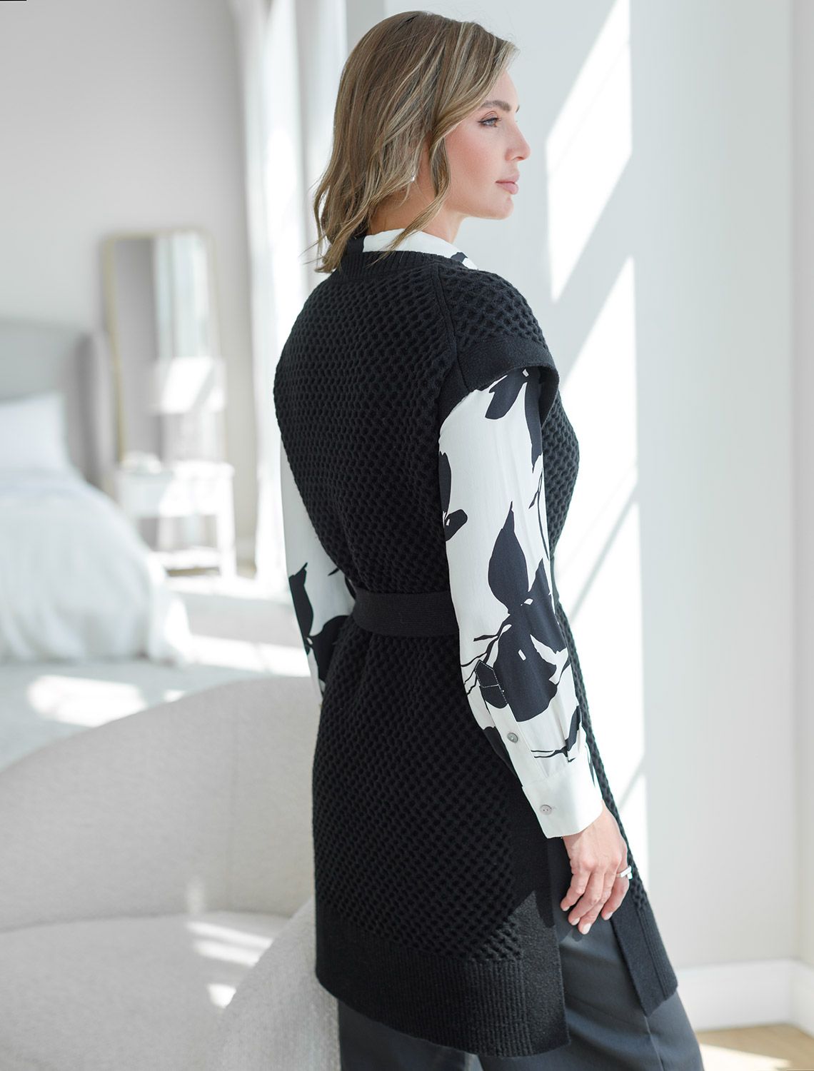 Удлиненный жилет выполнен из мягкой пряжи с кашемиром. Модель фактурной вязки дополнена высокими боковыми разрезами и поясом в тон изделия. Хорошо сочетается водолазками, лонгсливами и блузками. Мягкая пряжа очень приятная к телу, поддержит комфорт на протяжении всего дня, при этом не перегревая. Сочетается в костюме с брюками D38.013, D38.012 и юбкой D36.016