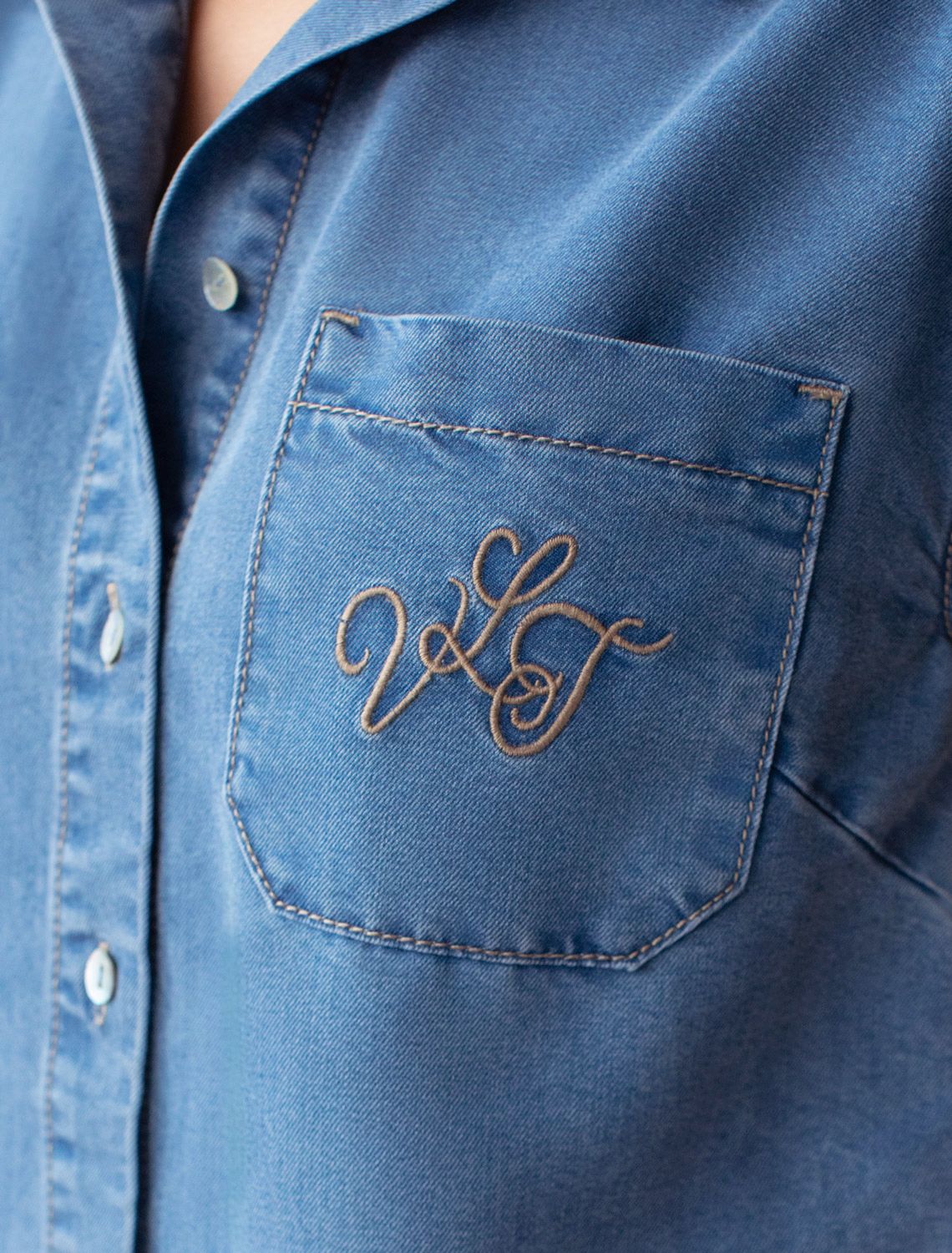 Стильная блузка светло-синего цвета на пуговицах выполнена из джинсового лиоцелла плотностью 7,8 OZ, что придает ей легкость и комфорт в носке. Эта повседневная блузка оснащена цельнокроеным коротким рукавом и отложным воротником, создавая аккуратный и современный образ. На груди расположен карман, дополненный изящной вышивкой в виде логотипа бренда, которая добавляет уникальности и выразительности изделию. Ткань сочетает прочность и мягкость лиоцелла с вискозой, что делает её невероятно комфортной, дышащей, устойчивой к сминанию и идеально подходящей для чувствительной кожи. Благодаря нежным тактильтным ощущениям, будто шелк, от которого ощущается приятная прохлада, рубашка отлично подходит для создания легких летних образов или стильных ансамблей на каждый день засчет своей универсальности и практичности. Цельнокроеный рукав гарантирует свободу движений и удобство на весь день. Эта джинсовая рубашка на пуговицах станет базовым элементом гардероба для тех, кто ценит сочетание классики и модных деталей.