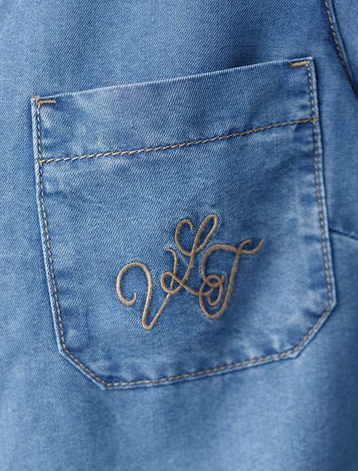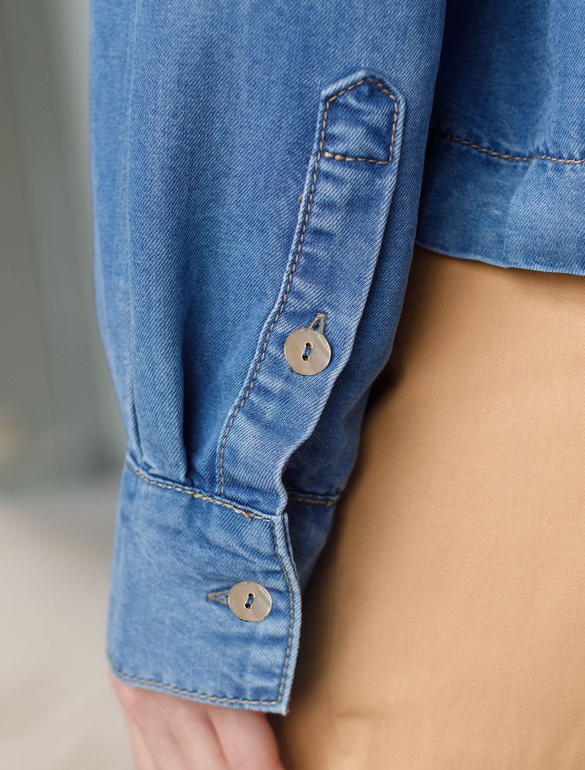 Укороченная стильная блузка светло-синего цвета с кулиской по низу выполнена из мягкого джинсового лиоцелла плотностью 7,8 OZ, который отлично держит форму и обеспечивает комфортную посадку на любую фигуру. Кулиска сформирует красивый силуэт, позволяя легко регулировать длину по желанию и подчеркнет достоинства фигуры, не стесняя движений. Короткая джинсовая рубашка на пуговицах с отложным воротником придаст образу стильный и современный вид. Практичная деталь — карман на груди с аккуратной вышивкой в виде логотипа бренда - украшает изделие. Ткань сочетает прочность и мягкость лиоцелла с вискозой, что делает её невероятно комфортной, дышащей, устойчивой к сминанию и идеально подходящей для чувствительной кожи. Благодаря нежным тактильным ощущениям, будто шелк, от которого ощущается приятная прохлада, рубашка отлично подходит для создания легких летних образов или стильных ансамблей на каждый день засчет своей универсальности. Длинный рукав гарантирует свободу движений и удобство на весь день. Джинсовую блузку можно сочетать в стиле кэжуал, а также создавать монохромные образы или добавлять яркие акценты с помощью аксессуаров. Эта джинсовая рубашка на пуговицах станет базовым элементом гардероба для тех, кто ценит сочетание моды и удобства.