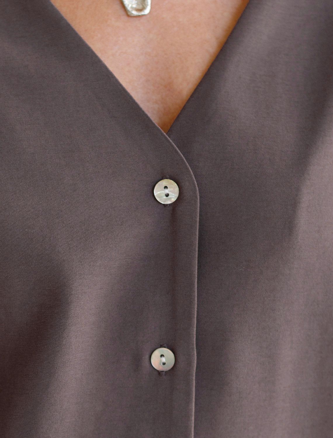 Укороченная блузка с V вырезом из плотного лиоцелла D29.356 кофейный