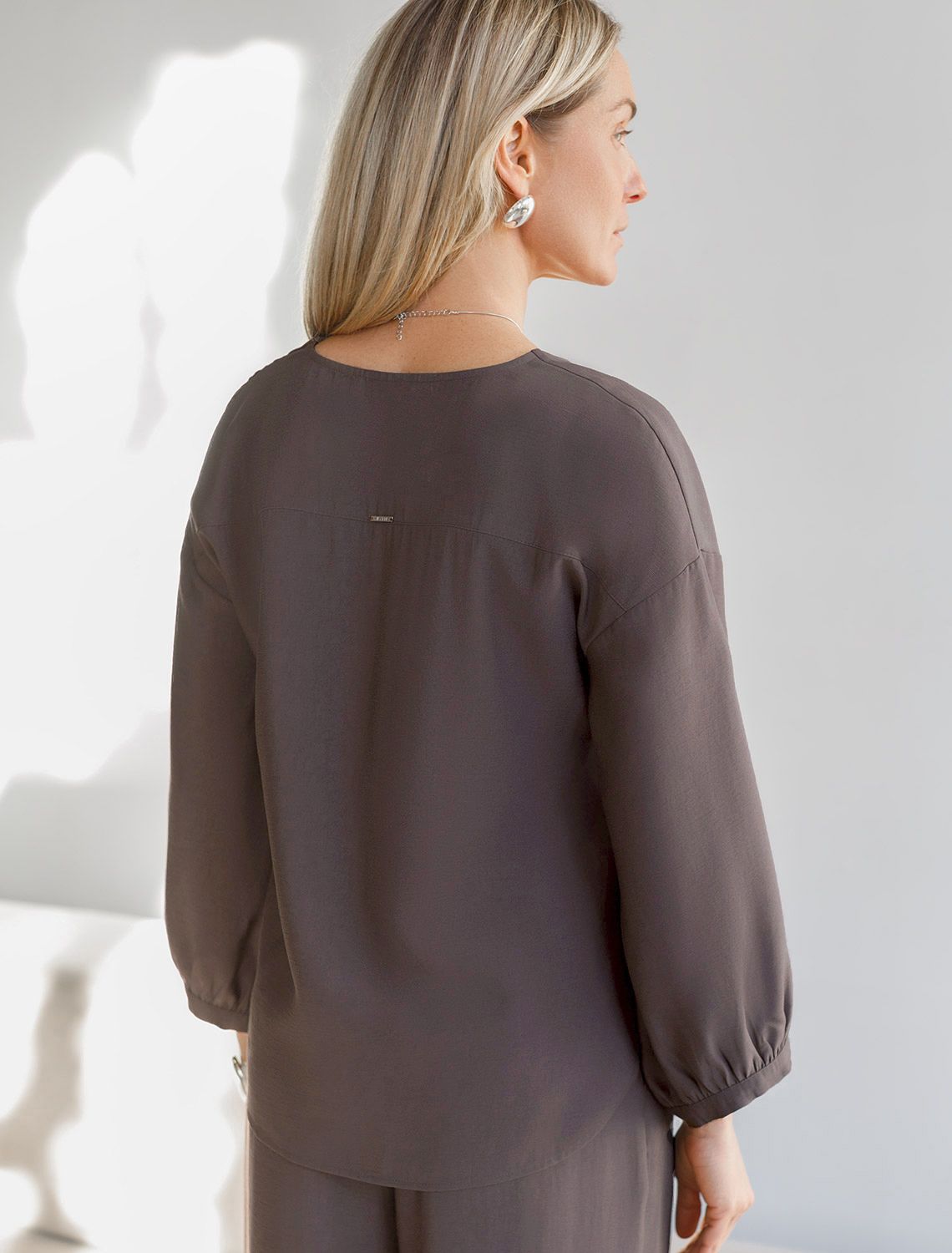 Элегантная укороченная блузка кофейного цвета выполнена из плотного лиоцелла. Лиоцелл это более дорогой и экологичный вариант вискозы, очень прочный и шелковистый. Ткань отличается от регулярной коллекции из лиоцелла - она содержит еще больше лиоцелла (92%), благодаря чему имеет более нежную шелковистую фактуру. Модель дополнена объемными рукавами длиной 7/8, создающими модный акцент. Укороченная передняя часть блузки выгодно подчеркивает линию талии, а удлиненная спинка обеспечивает комфорт. Этот асимметричный фасон придает образу динамичности, а V вырез визуально вытягивает силуэт. Свободный крой романтиной блузки не сковывает движений и отлично садится по фигуре даже на большие размеры, скрывая возможные недостатки. Эта легкая блузка с застежкой на пуговицы идеальный выборо для комфорта и стиля в теплое время года, она идеально адаптируется под любой повод.