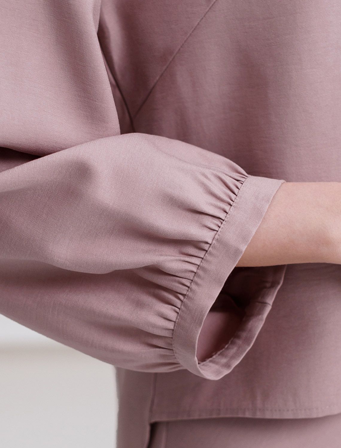 Элегантная укороченная блузка нежного зефирно-розового цвета выполнена из плотного лиоцелла. Лиоцелл это более дорогой и экологичный вариант вискозы, очень прочный и шелковистый. Ткань отличается от регулярной коллекции из лиоцелла - она содержит еще больше лиоцелла (92%), благодаря чему имеет более нежную шелковистую фактуру. Модель дополнена объемными рукавами длиной 7/8, создающими модный акцент. Укороченная передняя часть блузки выгодно подчеркивает линию талии, а удлиненная спинка обеспечивает комфорт. Этот асимметричный фасон придает образу динамичности, а V вырез визуально вытягивает силуэт. Свободный крой романтиной блузки не сковывает движений и отлично садится по фигуре даже на большие размеры, скрывая возможные недостатки. Эта легкая блузка с застежкой на пуговицы идеальный выборо для комфорта и стиля в теплое время года, она идеально адаптируется под любой повод.