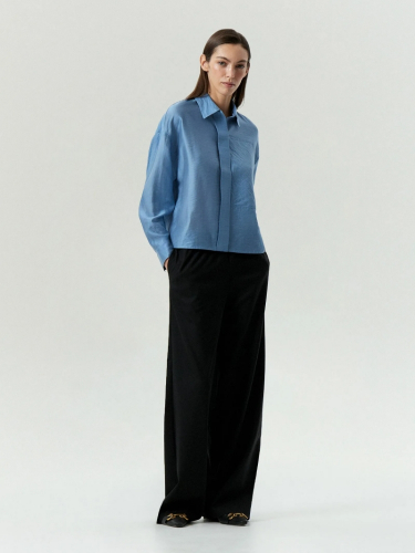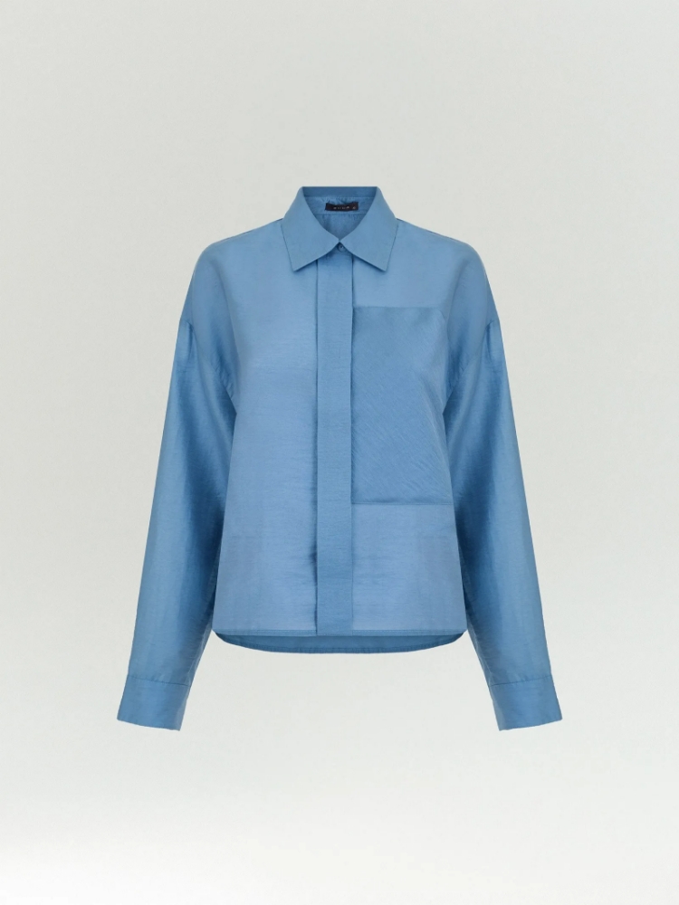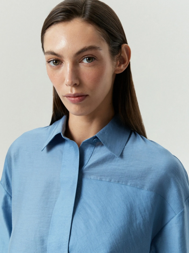 Укороченная свободная рубашка с эффектом асимметричной многослойности. Пуговицы закрывает элегантная планка: она выполнена так, чтобы пуговицы было легко расстегнуть и застенуть. На спинке есть кокетка. Рубашка сделана из комфортного материала с высоким содержанием тенсела: идеально на лето и межсезонье. Подходит в качестве второго слоя. Сочетается с любым денимом и не только. Глубокий оттенок сине-голубого отлично впишется в любой гардероб