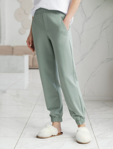Контрастный кант по низу добавляет стильный акцент и возможность сочетать с белыми футболками нашего бренда. Эти брючки идеально подойдут тем, кто ищет стильное решение с учетом комфорта и удобства, в них вы будете женственны и утонченны даже в домашней обстановке. св.оливковый
