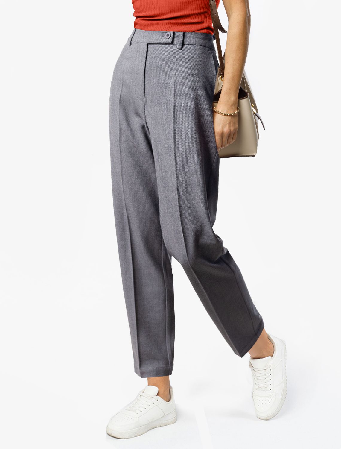 Укороченные брюки из фактурной черно-серой поливискозы с эластаном D24.226 серый