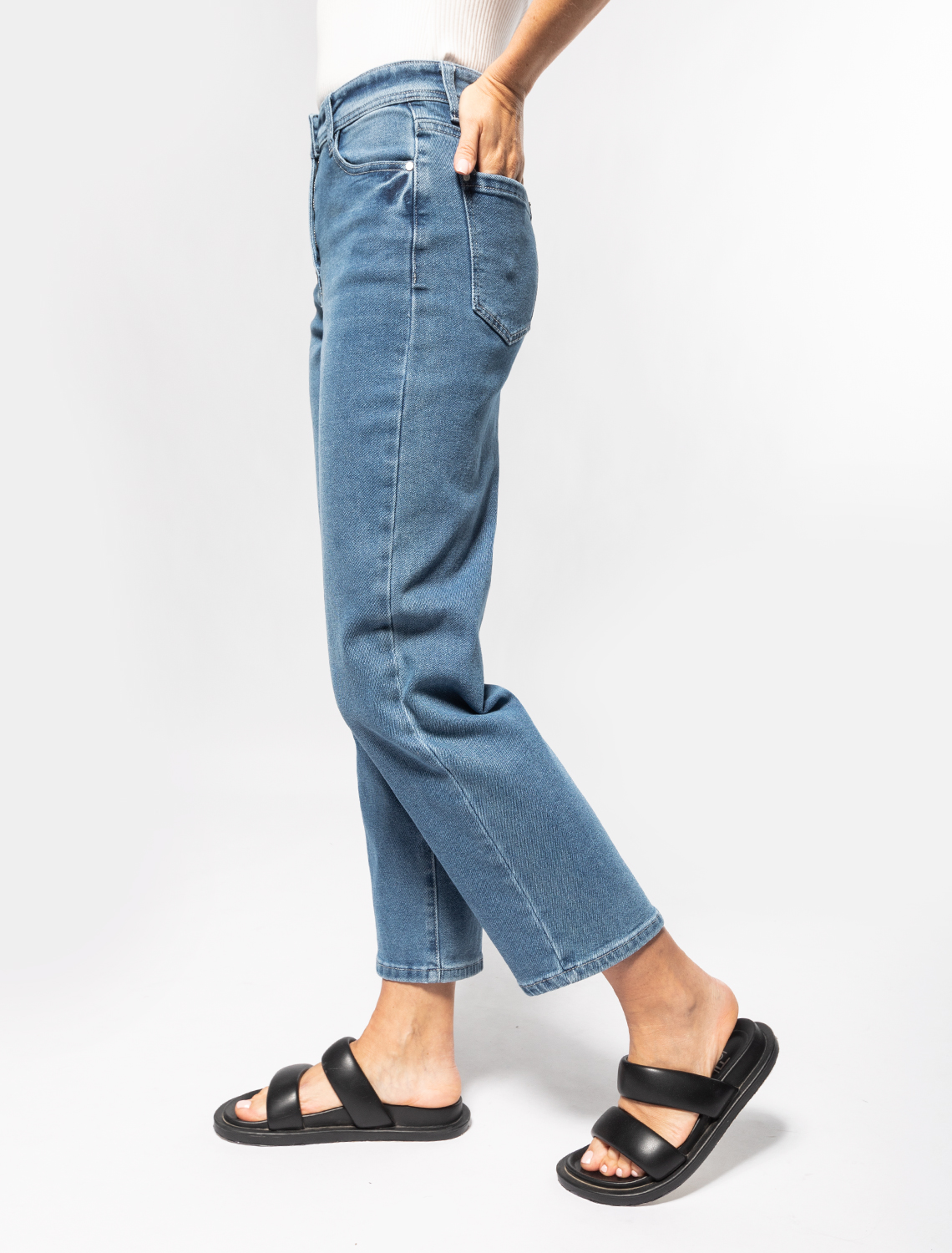 Укороченные джинсы из эластичного денима