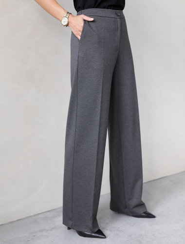 Свободные брюки прямого силуэта выполнены из эластичного футера двухнитки. Длина изделия до щиколотки. В боковых швах расположены карманы. Внутренняя часть кармана из тонкого хлопка в тон полотна. Модель дополнена эластичным поясом, с контрастной полосой и золотистым логотипом бренда. Сочетается в костюме с джемпером D49.083 и D49.086. Правила ухода: использовать жидкое моющее средство (гель для стирки), добавлять к нему кислородный пятновыводитель для цветных вещей, и салфетки (защита от окрашивания). Стирка при 30 градусах, отжим на максимальных оборотах.