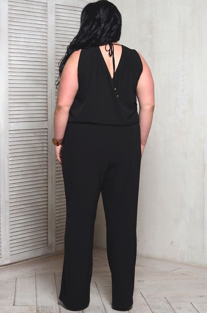 Шикарный комбинезон свободного кроя с напуском. Вырез горловины оформлен мягкими складками, по центру переда вырез-щель. Спинка с запахом, облегчающая одевание, в верхней части завязывающийся на 2 шнурочка. Черный цвет — это идеал. Вы можете его носить и днем, и вечером. Он всегда к лицу... Он всегда сексуален