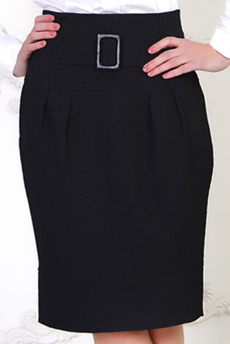Очаровательная юбка расклешенного силуэта из однотонного костюмного полотна темного оттенка. Верх с удобной посадкой, на притачном поясе. Низ оформлен двуслойной притачной деталью со складками. По спинке центральный шов с застежкой на потайную ленту-молнию и пуговицу, а снизу выполнен аккуратный разрез.