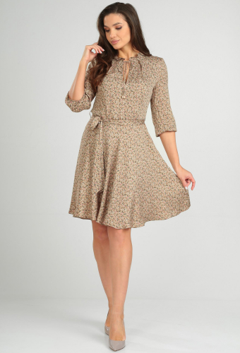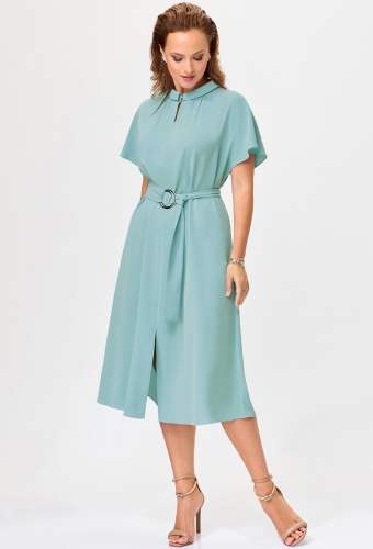 Платье женское полуприлегающего силуэта, отрезное по линии талии. Рукав на манжете со вставкой из кружева. В среднем шве спинки молния, круглый вырез горловины. Юбка полусолнце, на подкладке. Платье с поясом.