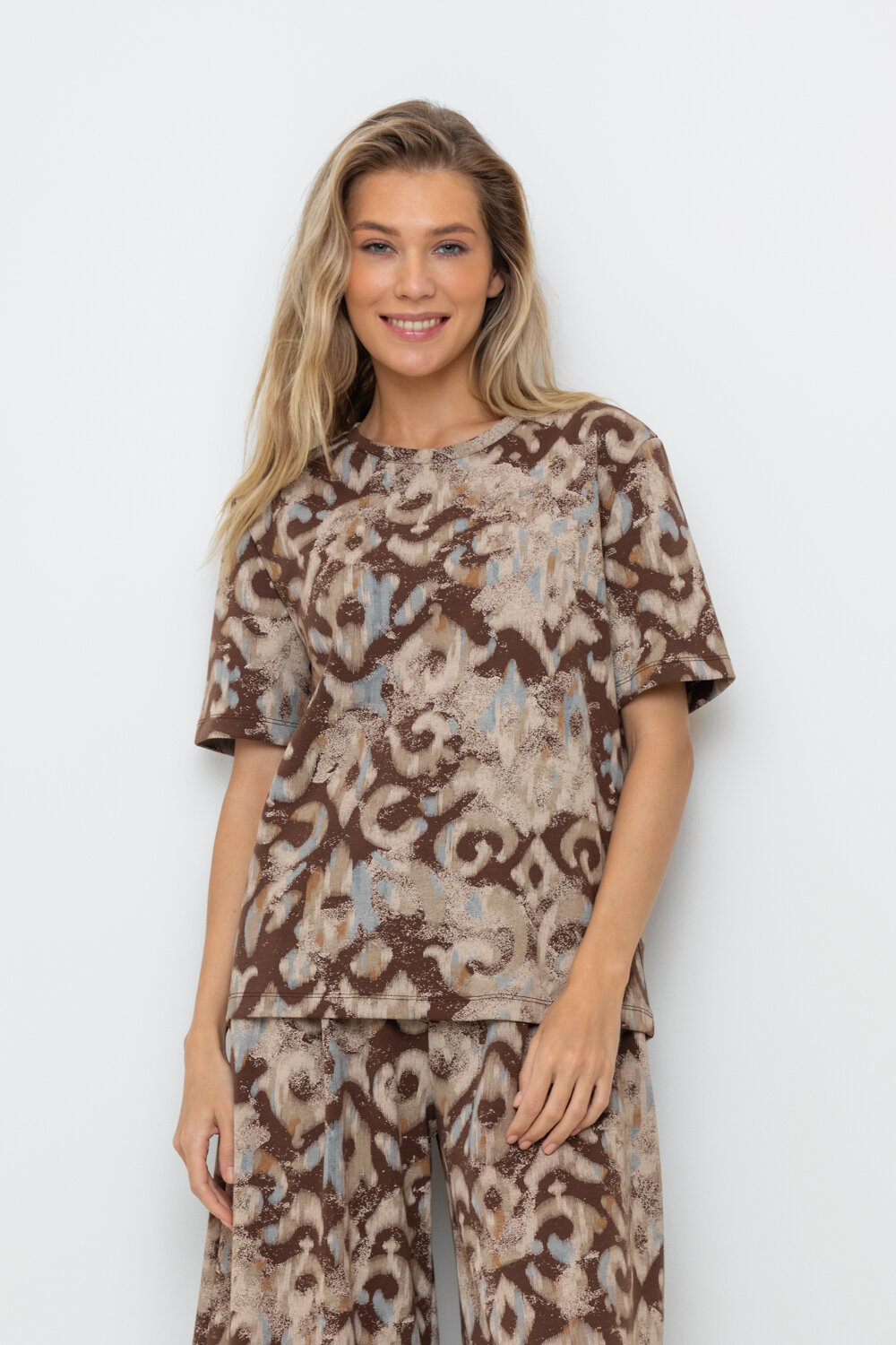 Базовая футболка из плотного набивного трикотажа интерлок.