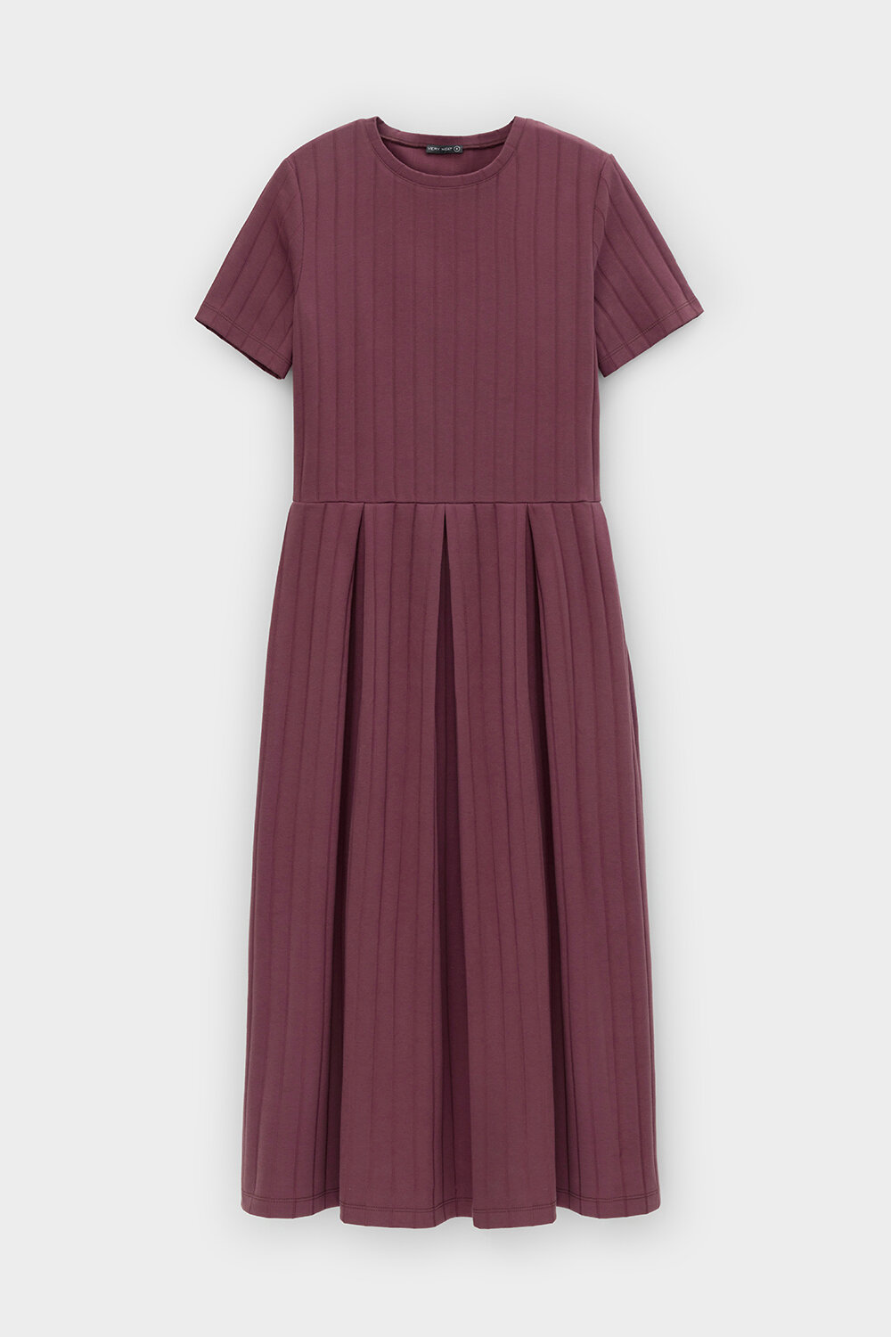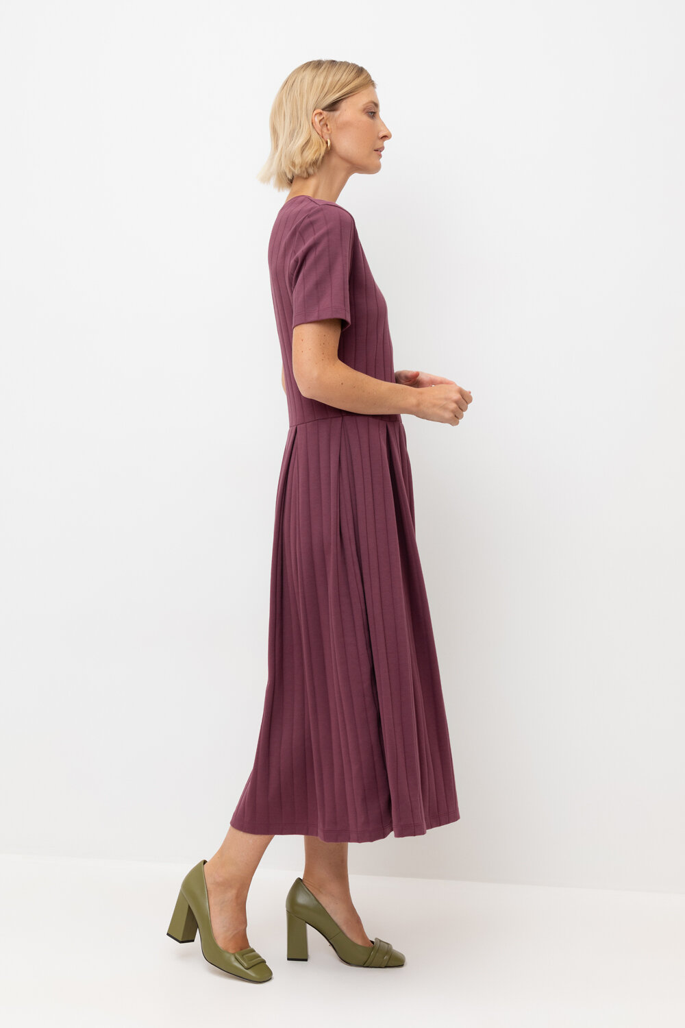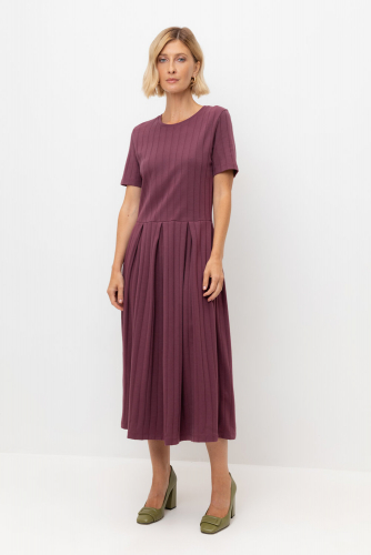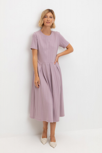 Платье с круглым вырезом и короткими рукавами из плотного гладкого трикотажа интерлок в рубчик. Все трикотажные полотна производятся в соответствии с нормами Швейцарского сертификата ЭкоТекс. Сделано в России