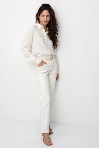 Женские джинсы из мягкого стрейч денима прямого кроя с эффектом выбеленности и завышенной линией талии. Модель с классическими 5 карманами и фирменной нашивкой из эко кожи Very Neat.