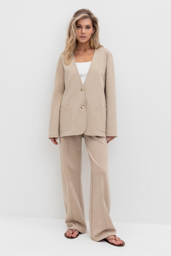 Брюки прямого кроя со стрелкой и боковыми карманами из плотного гладкого трикотажа интерлок. Застёгивается спереди на молнию и кнопку. В составе 80% натурального хлопка и 20% полиэстера, при этом полиэстер ввязан внутрь по особой технологии и не соприкасается с кожей.