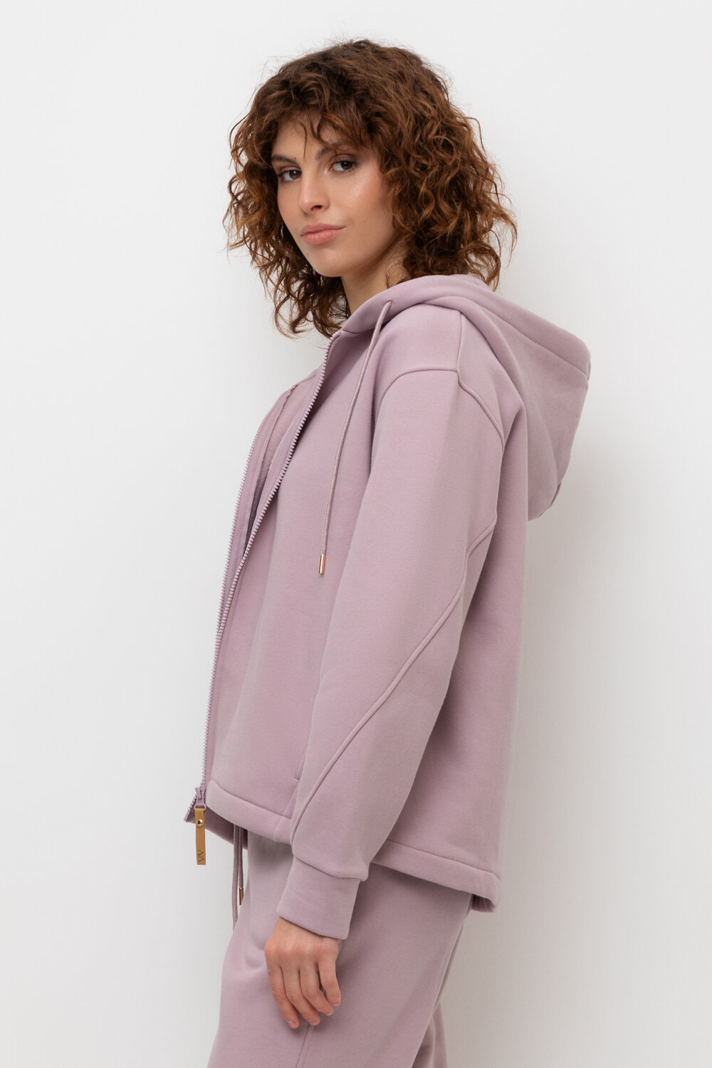 Тёплая трикотажная куртка на молнии с глубоким капюшоном. Произведена из мягкого трикотажного футер трёхнитки с начёсом. В составе 80% натурального хлопка и 20% полиэстера, при этом полиэстер ввязан внутрь по особой технологии и не соприкасается с кожей. В капюшоне мягкий подклад.