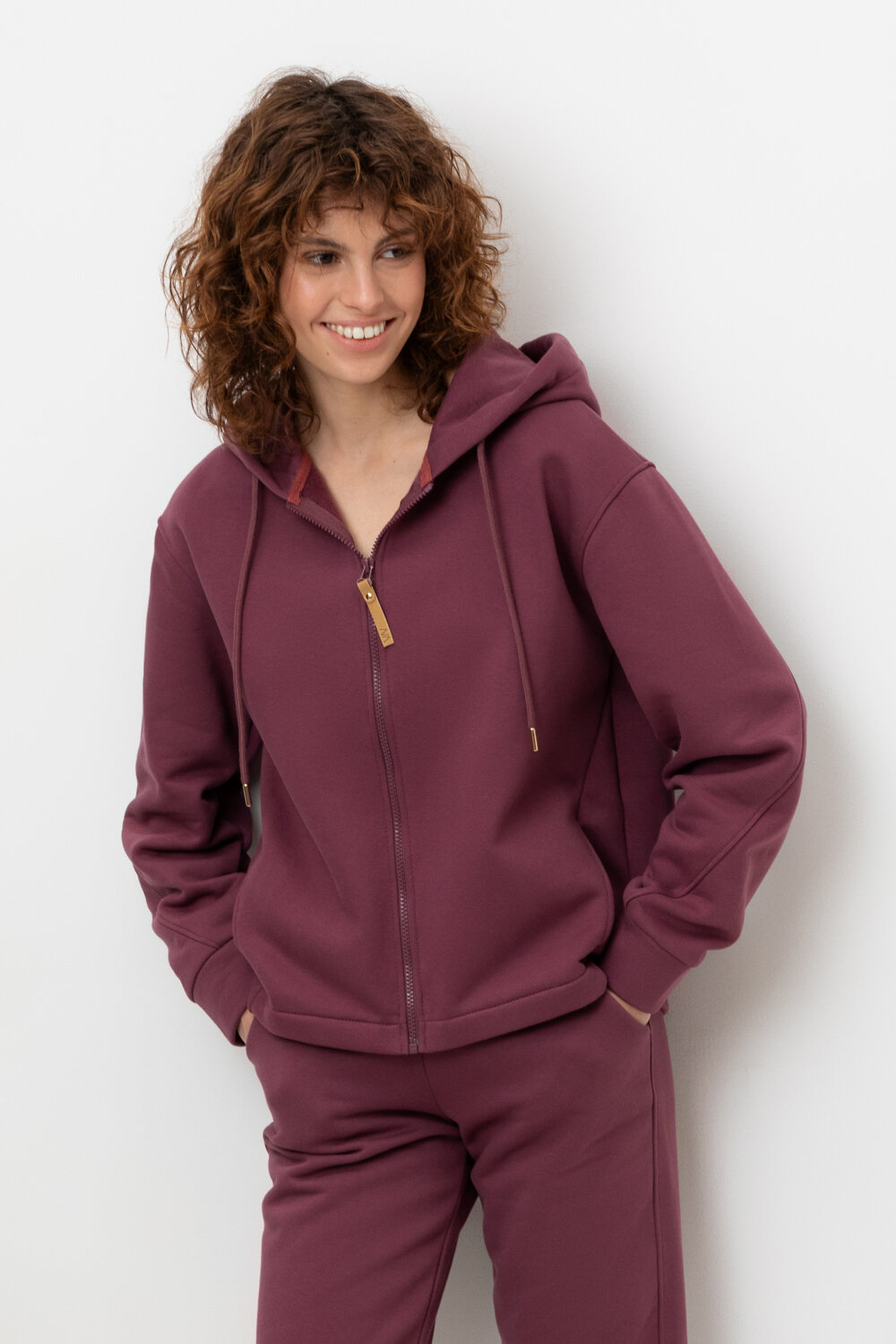Тёплая трикотажная куртка на молнии с глубоким капюшоном. Произведена из мягкого трикотажного футер трёхнитки с начёсом. В составе 80% натурального хлопка и 20% полиэстера, при этом полиэстер ввязан внутрь по особой технологии и не соприкасается с кожей. В капюшоне мягкий подклад.