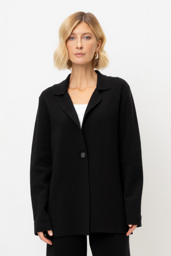 Женский жакет прямого кроя связан комбиниркой. Шерсть мериноса в составе сохраняет тепло, акрил делает изделие мягким. Прямой силуэт идеально подходит как к юбке, так и к брюкам.