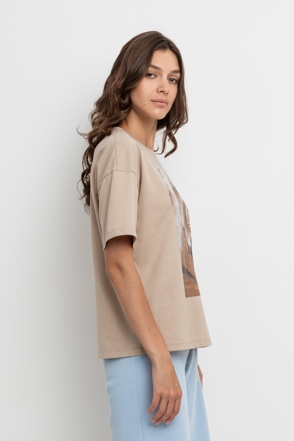 Женская футболка из длинноволокнистого гребенного хлопка с принтом.