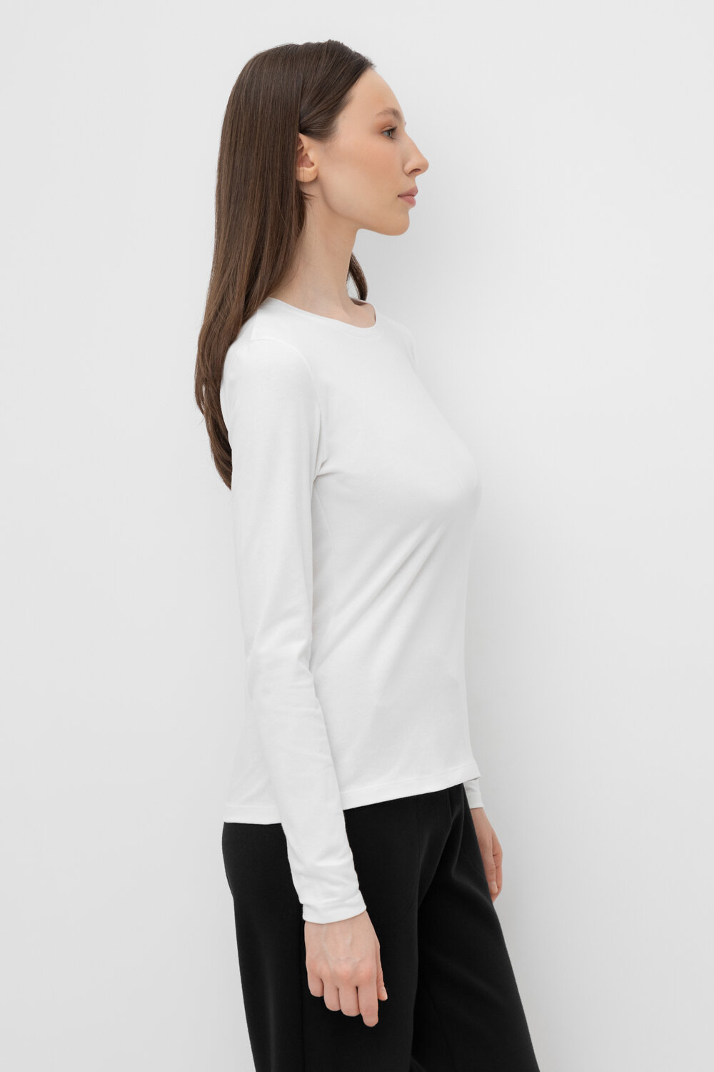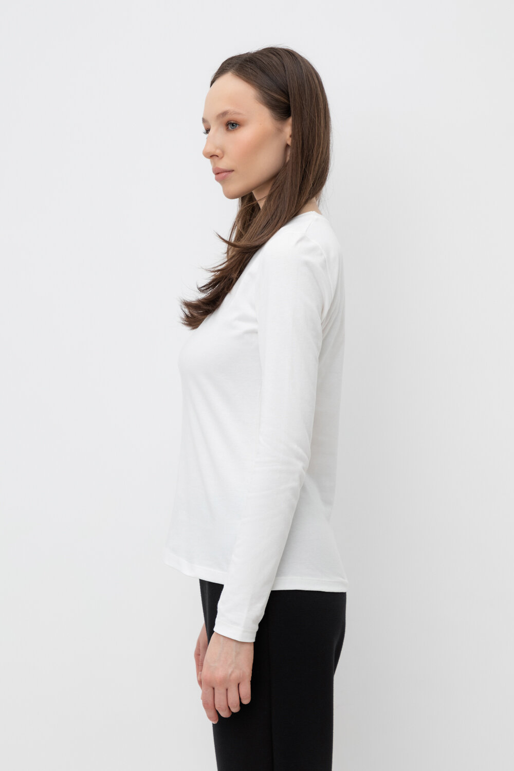 Базовый лонгслив из плотного однотонного трикотажа супрем с добавлением спандекса.