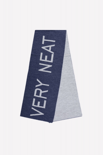 Двусторонний шарф из полушерсти с вывязанным рисунком в виде надписи VERY NEAT. Длина - 200 см, ширина - 40 см. Связан гладью. Украшен фирменной этикеткой.