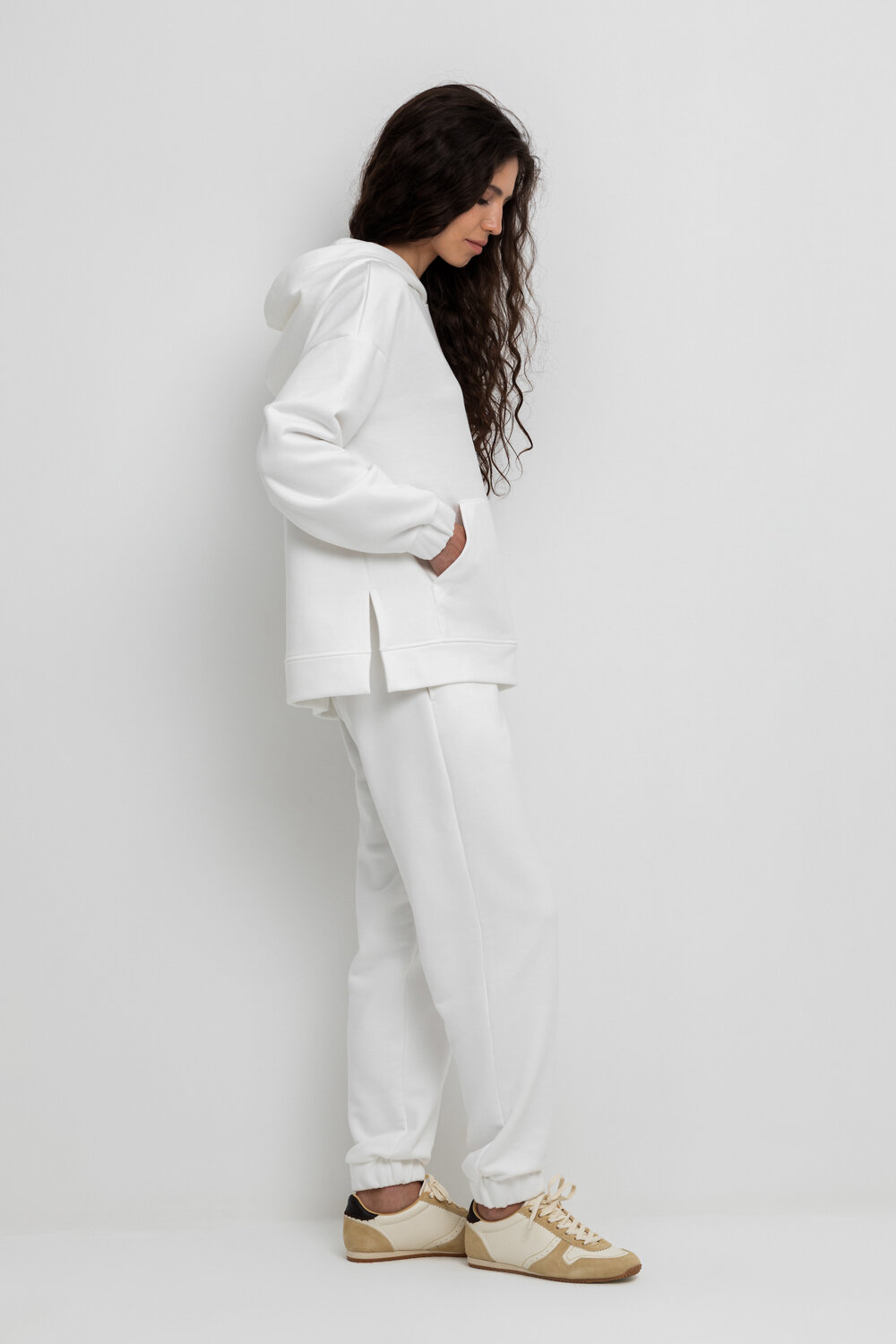 Теплые брюки с манжетами на резинке и боковыми карманами из мягкого трикотажного футера трёхнитки.