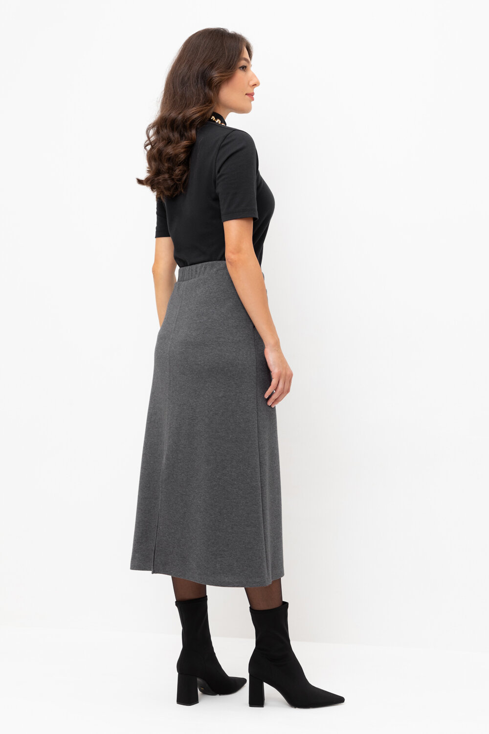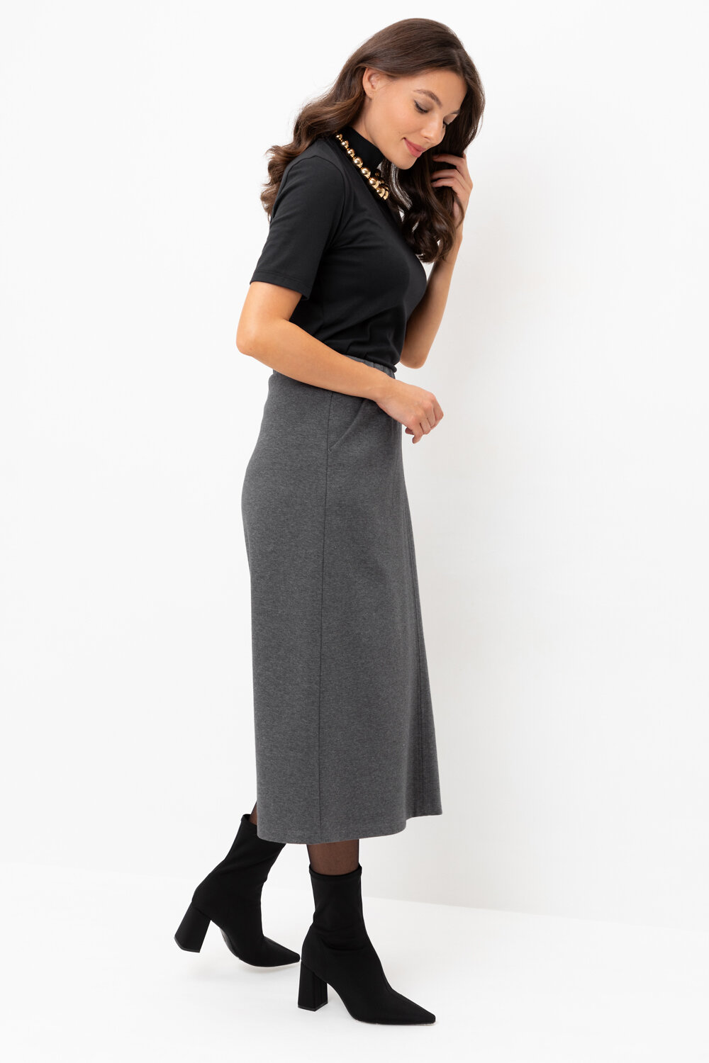Трикотажная юбка длины миди из плотного гладкого трикотажа интерлок, произведенного из высококачественного гребенного хлопка. В составе 80% натурального хлопка и 20% полиэстера, при этом полиэстер ввязан внутрь по особой технологии и не соприкасается с кожей. Застегивается на потайную молнию. Изделие сохраняет цвет и форму после многократных стирок.