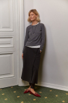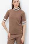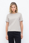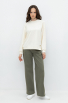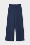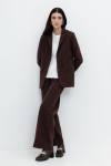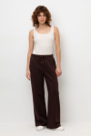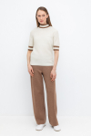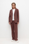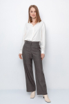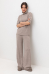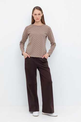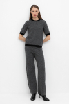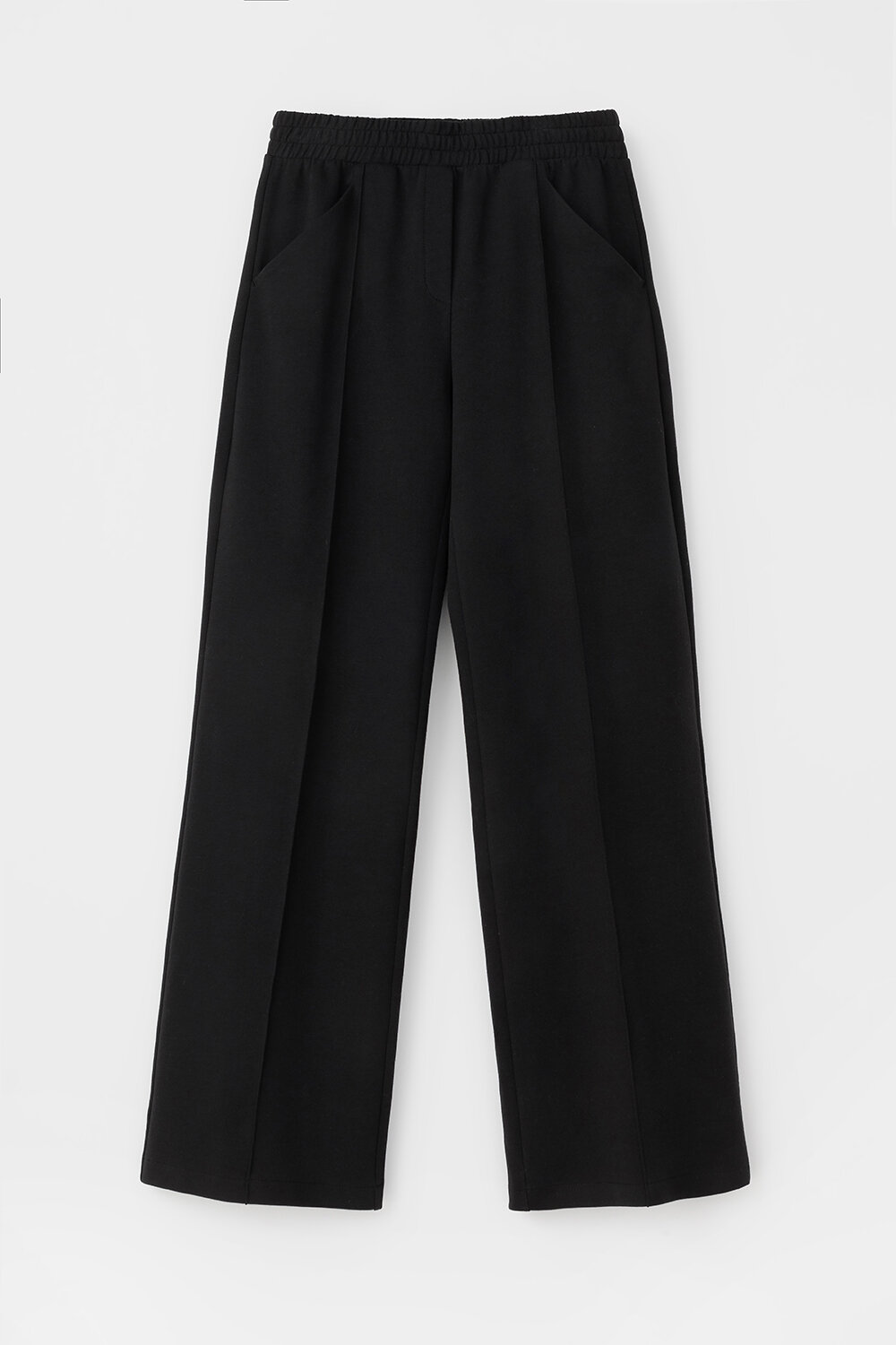 Брюки прямого кроя со стрелкой и боковыми карманами из плотного гладкого трикотажа интерлок.