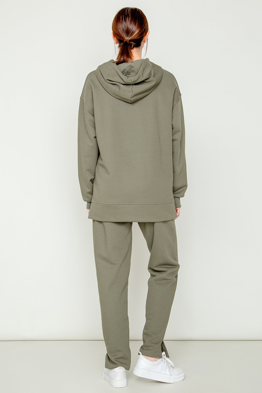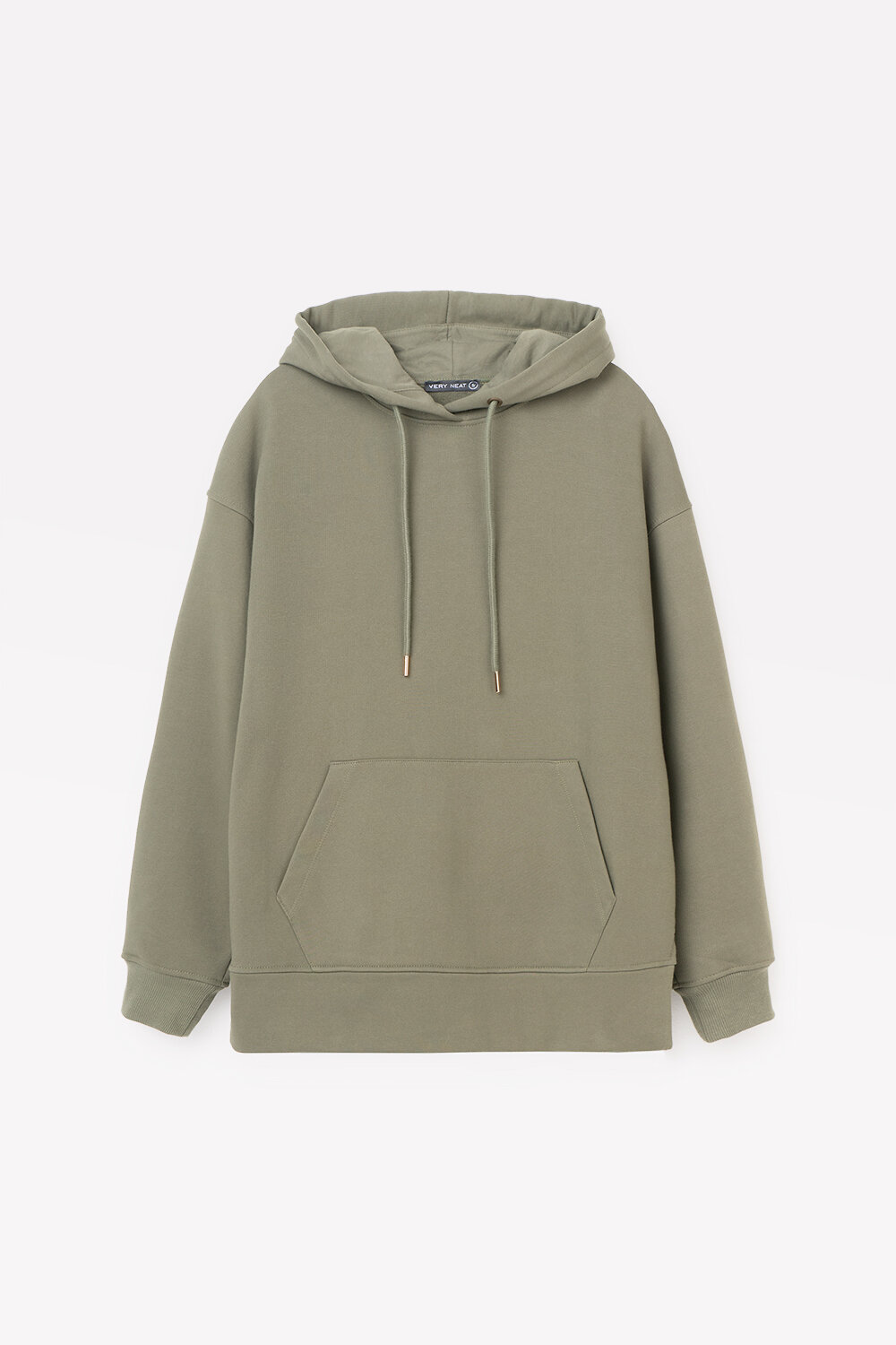 Трикотажная толстовка-оверсайз из петельчатого футера трехнитки. Капюшон регулируется с помощью шнура. У изделия свободная посадка, карман-кенгуру, эластичные манжеты. По бокам разрезы. Гладкий и плотный материал на основе хлопка сохраняет форму.