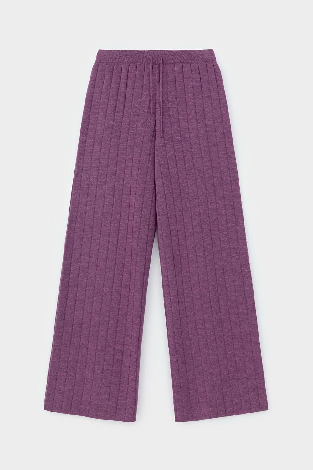 Пояс регулируется вязаным шнуром в тон брюк. Плотная фактура вязания согревает и сохраняет форму во время носки.
