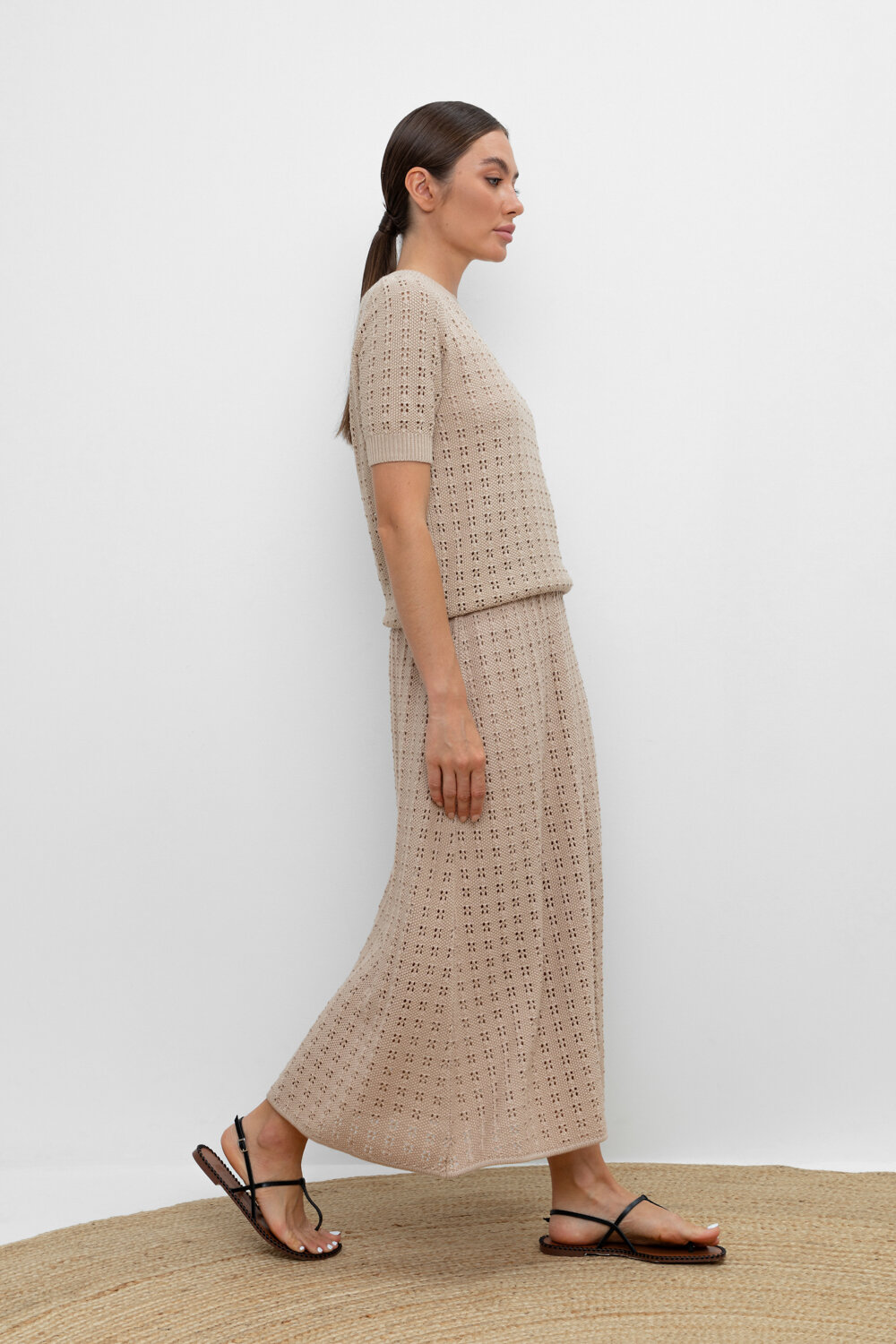 Вязаная ажурная юбка макси с подкладом. Состав 50% хлопок, 50% акрил. Благодаря акрилу в составе изделие не пилингуется.