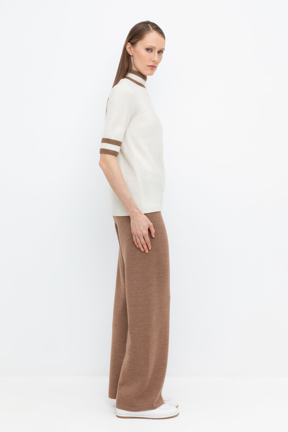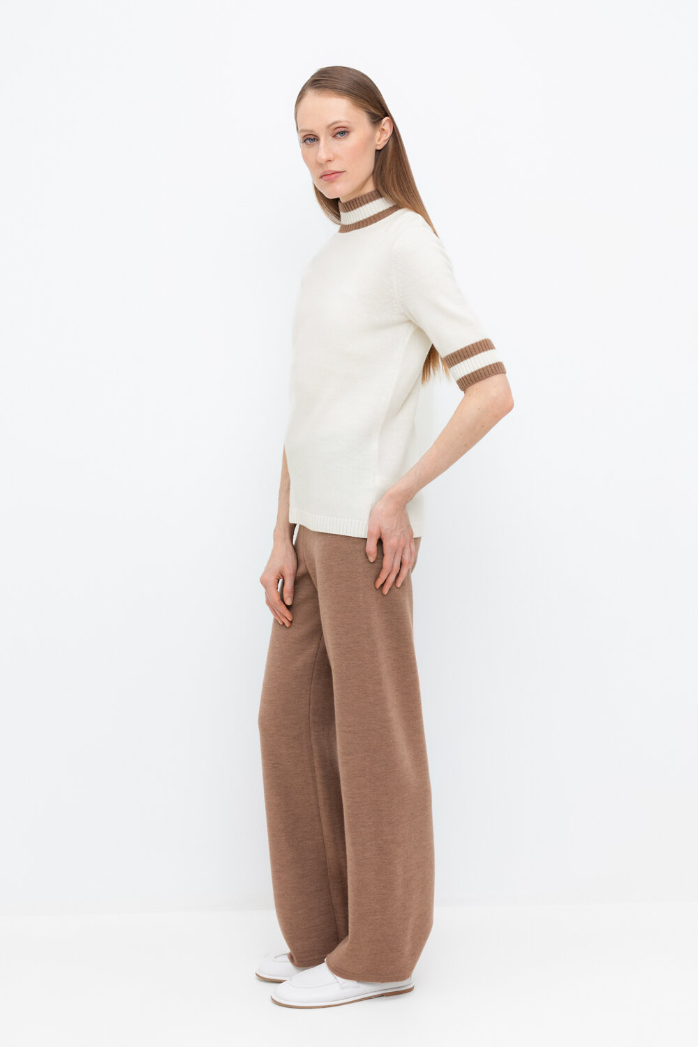 Удобные вязаные брюки прямого силуэта. Выполнены из мягкой полушерстяной пряжи. Шерсть в составе сохраняет тепло, а благодаря волокнам акрила изделие мягкое и дольше сохраняет форму.