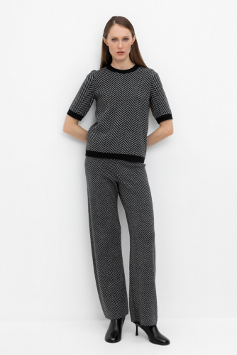 Пояс регулируется вязаным шнуром в тон брюк. Плотная фактура вязания согревает и сохраняет форму во время носки.