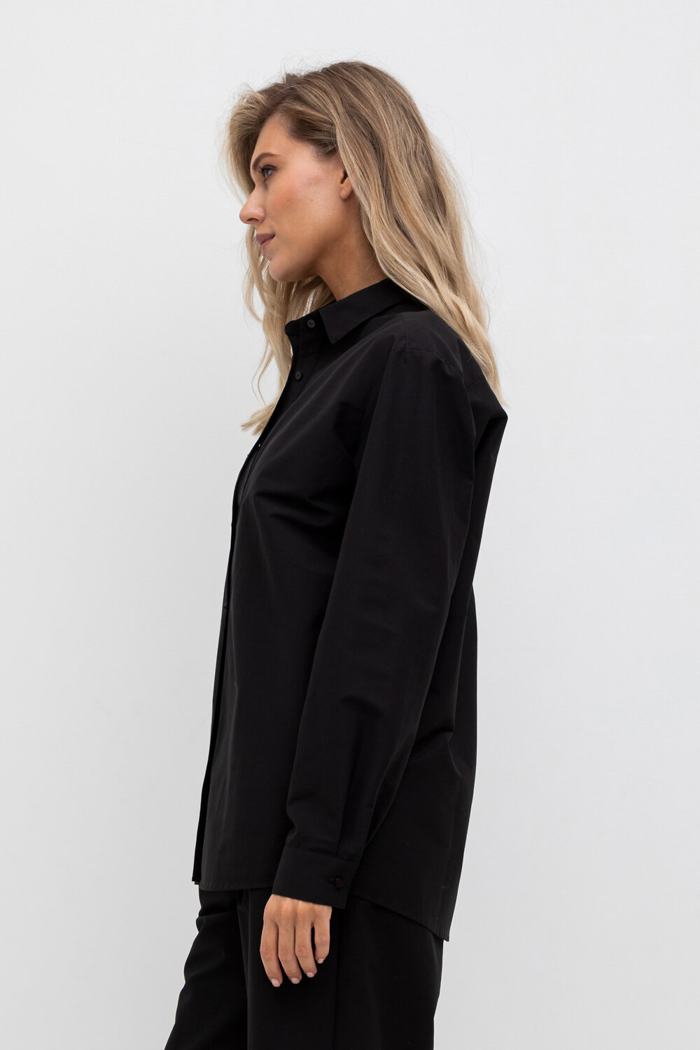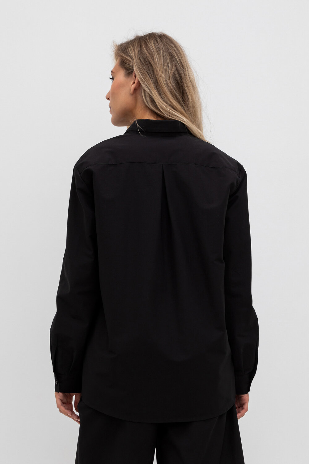 Рубашка свободного кроя из смесового хлопка с добавлением эластана со спущенной линией плеча и длинными рукавами с манжетами на пуговицах.