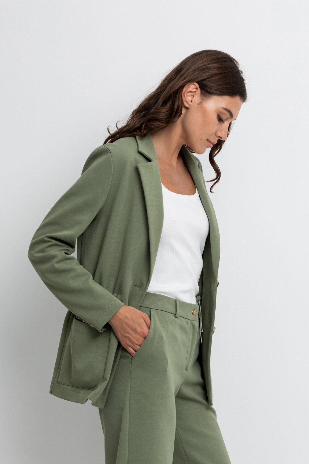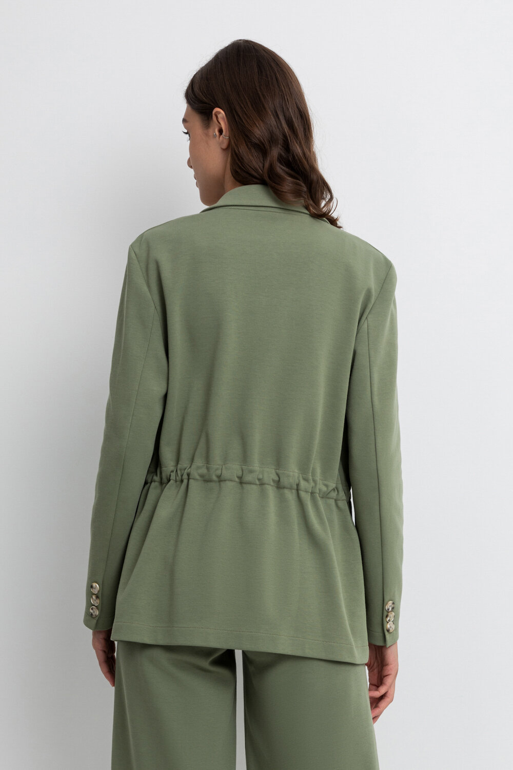 Женский жакет прямого кроя с карманами и кулиской из плотного гладкого трикотажа интерлок. Гладкий и плотный материал на основе хлопка сохраняет форму.