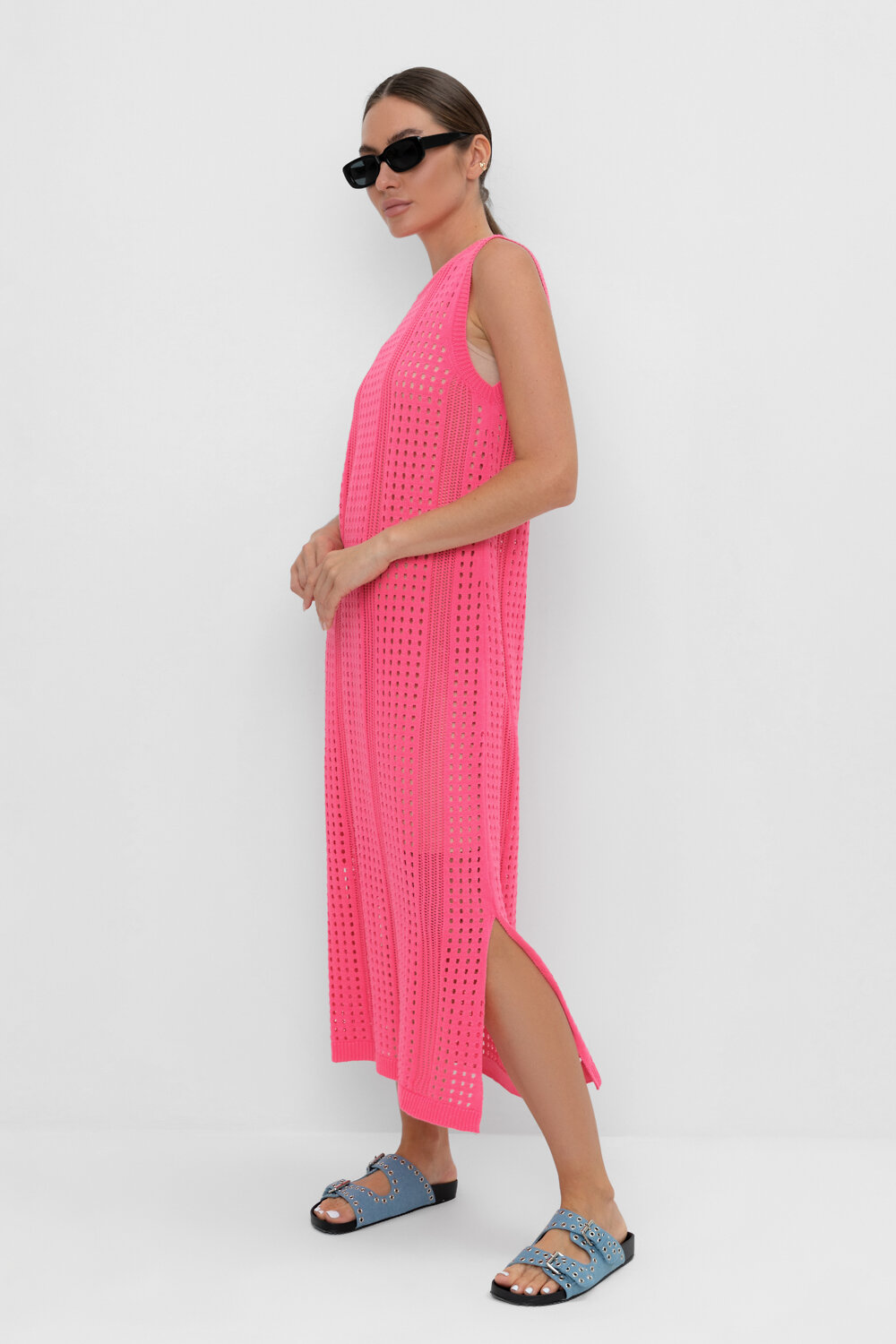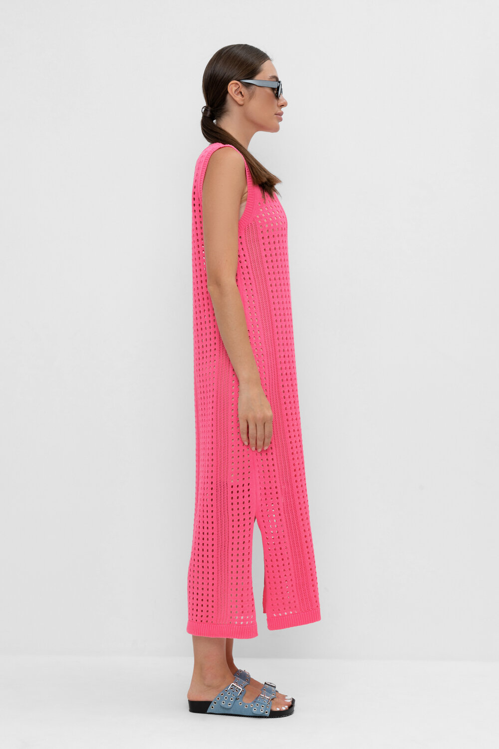 Вязаное ажурное платье. Состав 50% хлопок, 50% акрил. Благодаря акрилу в составе изделие не пилингуется. В комплекте внутреннее платье из бифлекса.