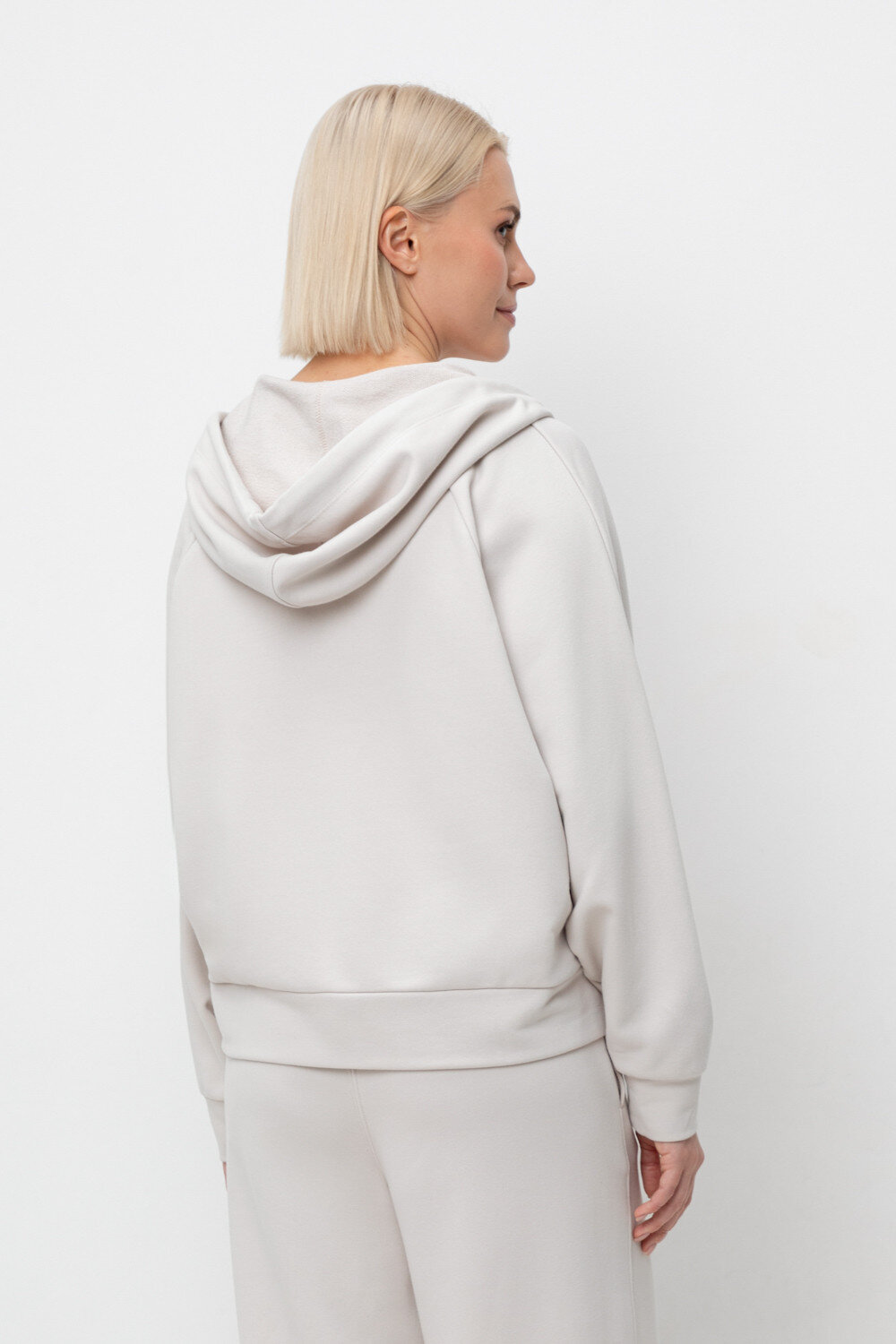 Объемная толстовка на молнии из мягкого трикотажного футера. Наличие специальных обработок полотна придало изделию мягкость и шелковистость.