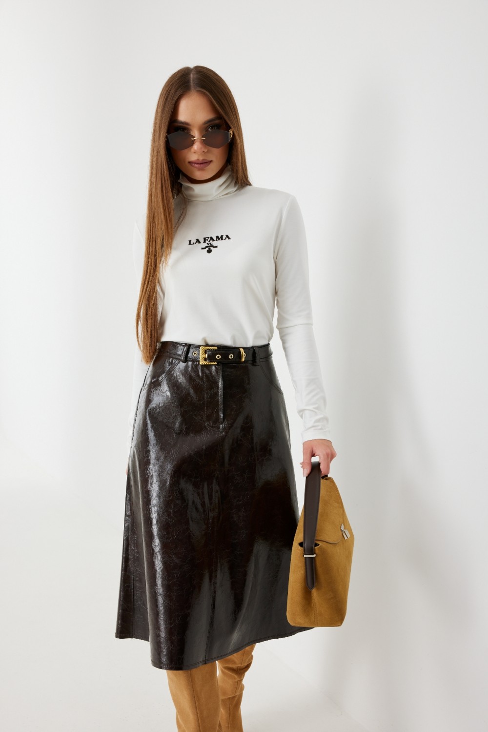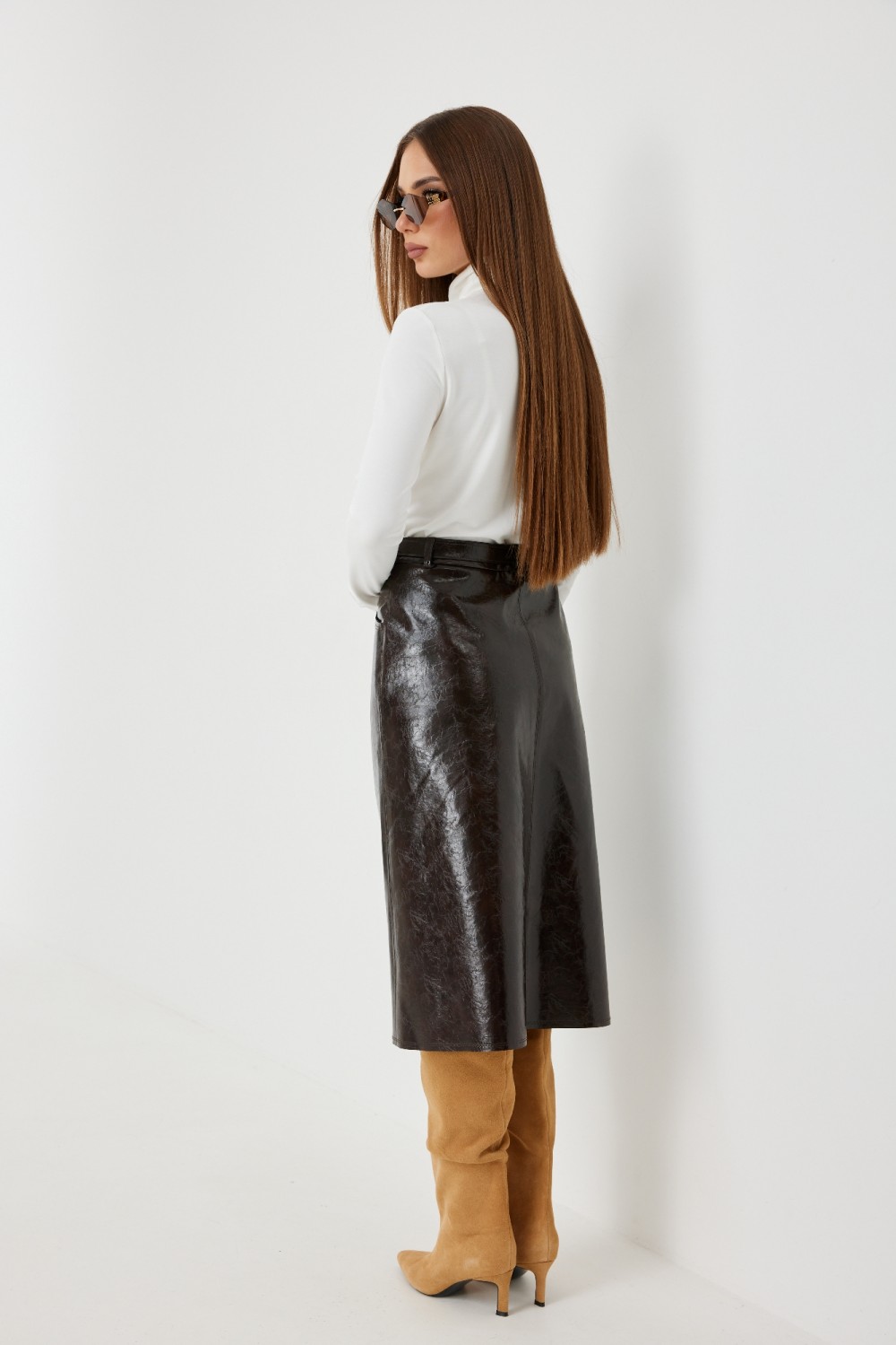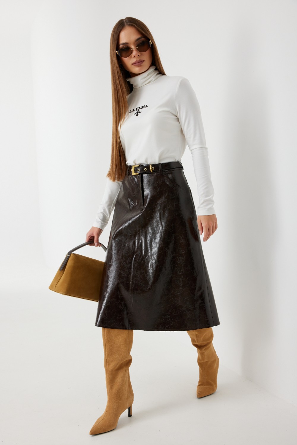 " 164-170 см. - "Юбка женская из трендовой фактурной экокожи  на подкладке, длиной чуть ниже колена, пояс