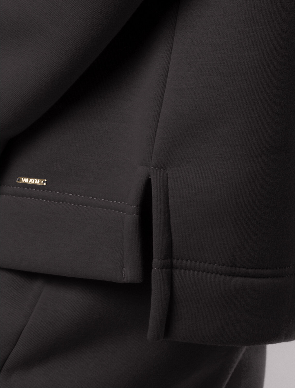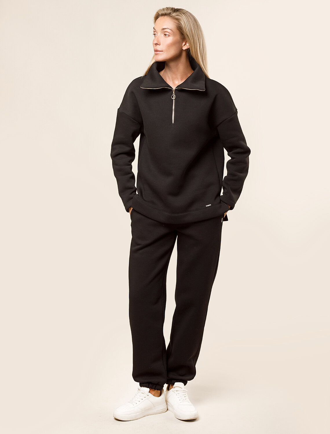 Джемпер с воротом стойкой на молнии выполнен из премиального футера трехнитки с теплым начесом. Модель дополнена золотистой фурнитурой, что поддерживает актуальный стиль спорт-шик. Свободный крой подходит для любой фигуры. Ранней осенью или поздней весной можно носить в качестве верхней одежды. Сочетается в костюме с брюками D44.133.
