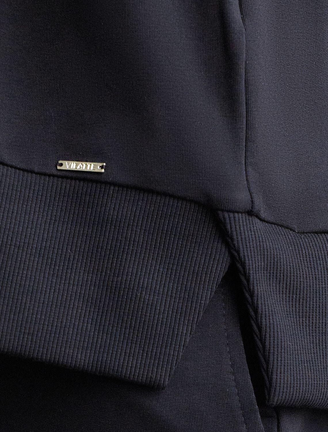 Стильный свитшот черного цвета из премиального футера двухнитки с эластаном сочетает в себе комфорт и оригинальность. Джемпер выполнен из натурального хлопка, который обеспечивает мягкость и дышащие свойства ткани. Нежный материал дарит ощущение уюта в любое время года, а премиальное качество изготовления гарантирует долговечность и сохранение формы после множества стирок. Особенность изделия — спущенная линия плеча и аккуратные разрезы, которые добавляют современный акцент и делают образ более выразительным. Принт в виде надписи придает индивидуальность, позволяя выделиться без лишней вычурности. Перевод надписи Athleisure mood club - Клуб спортивного настроения. Дополнен металлическим логотипом бренда. Представлена широкая размерная линейка, включая маленькие и большие размеры, что позволяет подобрать идеальный вариант для разной фигуры и роста. Этот уютный свитшот отлично подходит для повседневной носки благодаря своей комфортной посадке и мягкой текстуре. Он станет универсальным элементом гардероба, легко сочетающимся с различными стилями одежды. Свободный джемпер из футера станет отличным выбором для активного отдыха, обеспечивая стильный внешний вид и удобство весной, летом или в прохладную погоду.