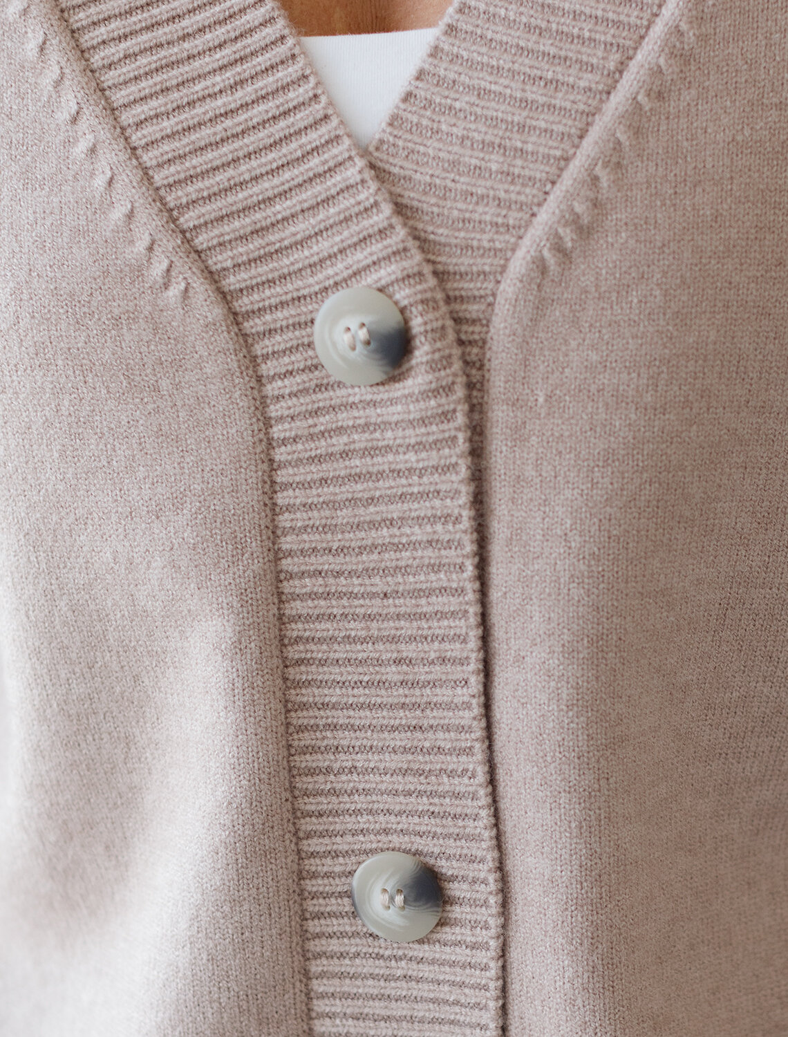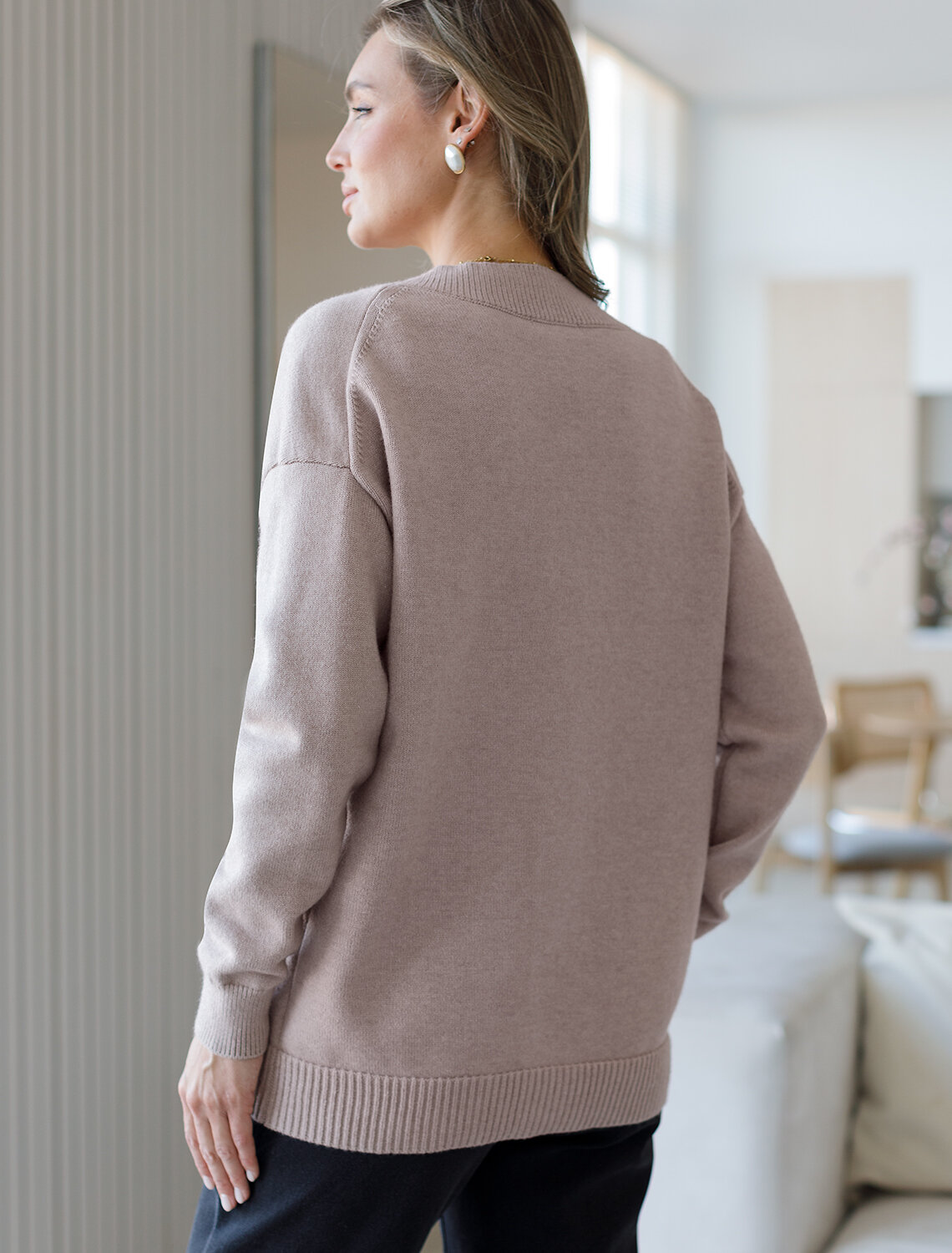 Удлиненный кардиган выполнен из мягкой меланжевой пряжи с добавлением кашемира. Классическая модель с глубоким вырезом прямого силуэта идеально сочетается как с брюками, юбками, джинсами, так и с платьями. Застежка на пуговицы. Изделие очень приятное к телу, совершенно не колется и отлично сохраняет тепло. Сочетается в костюме с брюками D38.013, D38.012 и юбкой D36.016