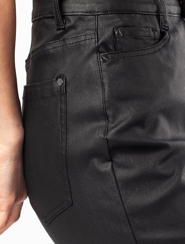 Мини-юбка выполнена из денима с покрытием под кожу. Мягкий и эластичный материал с внутренней тканевой поверхностью обеспечит исключительный комфорт, как вторая кожа. Совет стилиста: прямая мини-юбка хороша в тандеме с любым объемным верхом; рубашка, свитшот или вязаный джемпер. В классическом сочетании – водолазка или свитер мелкой вязки.