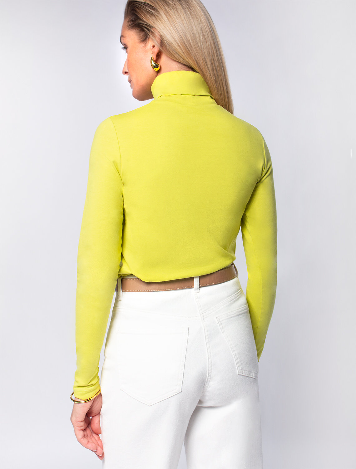 Яркая лаймовая водолазка выполнена из премиального хлопка с добавлением эластичных волокон. Гладкий трикотаж обеспечит гарантированный комфорт и удобство в использовании. Внизу изделия металлическая нашивка с логотипом бренда. Совет стилиста: водолазка может заменить рубашку в нестрогом офисном образе или подружиться с джинсами-трубами, жилетом и кедами в расслабленном повседневном наряде.
