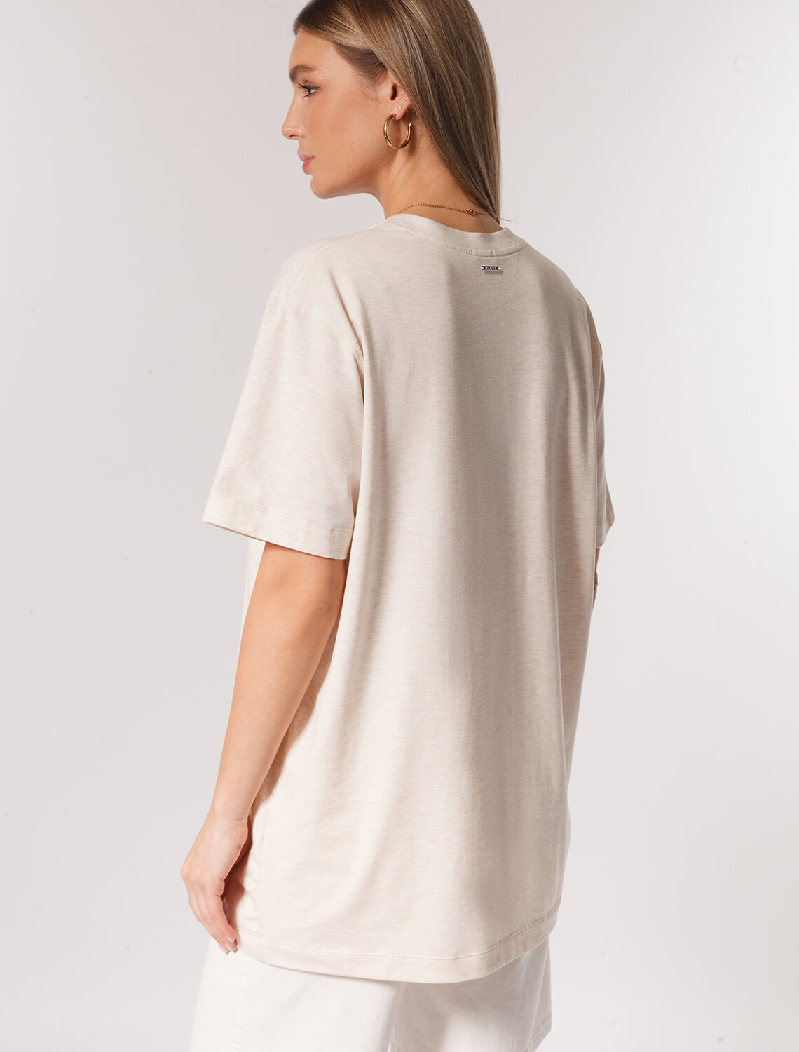 Свободная футболка выполнена из премиального хлопка. Авторский принт выполнен фольгой с устойчивым покрытием. Добавление эластана в состав изделия гарантирует безупречный комфорт и долговечность. Модель украшена металлическим логотипом бренда.