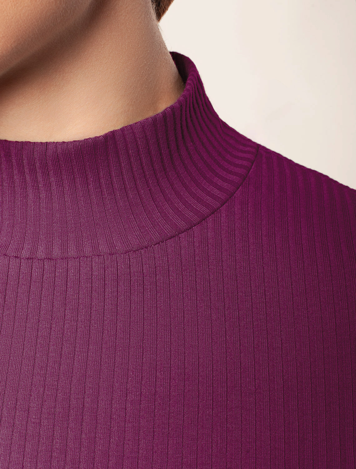 Футболка с воротом стойка выполнена из фактурного трикотажа в рубчик. Модель идеально сидит по фигуре не сковывая движения. Хлопковый трикотаж поддерживает оптимальную температуру тела, поэтому в изделии будет комфортно в течении всего дня. Наличие эластана в составе гарантирует формоустойчивости. Базовая модель впишется в любой гардероб и подойдет для офисного дресс-кода.
