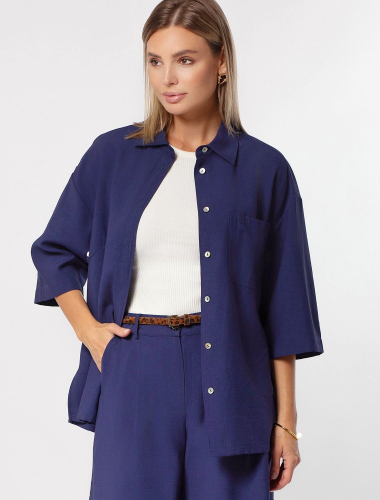 Блузка свободного кроя выполнена из плотного лиоцелла. Застежка на пуговицы из натурального перламутра. Добавление синтетических волокон в составе изделия предотвращает сминаемость. Подходит для любой фигуры. Для создания расслабленного образа, сочетайте в костюме с брюками D24.214, D24.218, шортами D28.054 и юбкой D26.181