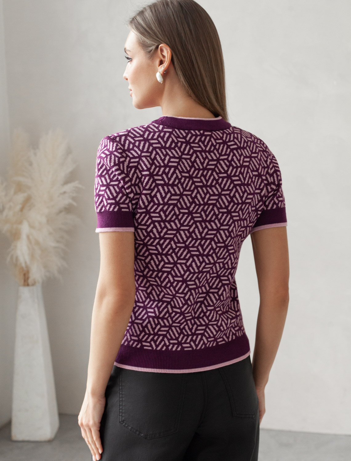 Джемпер жаккардовой вязки выполнено из нежной пряжи на основе вискозы с добавлением кашемира. Лаконичная модель с круглым воротом. Сочетается в комплекте total-look с жакетом D31.150 Изделие приятно ощущается на теле и поддерживает комфортный микроклимат.