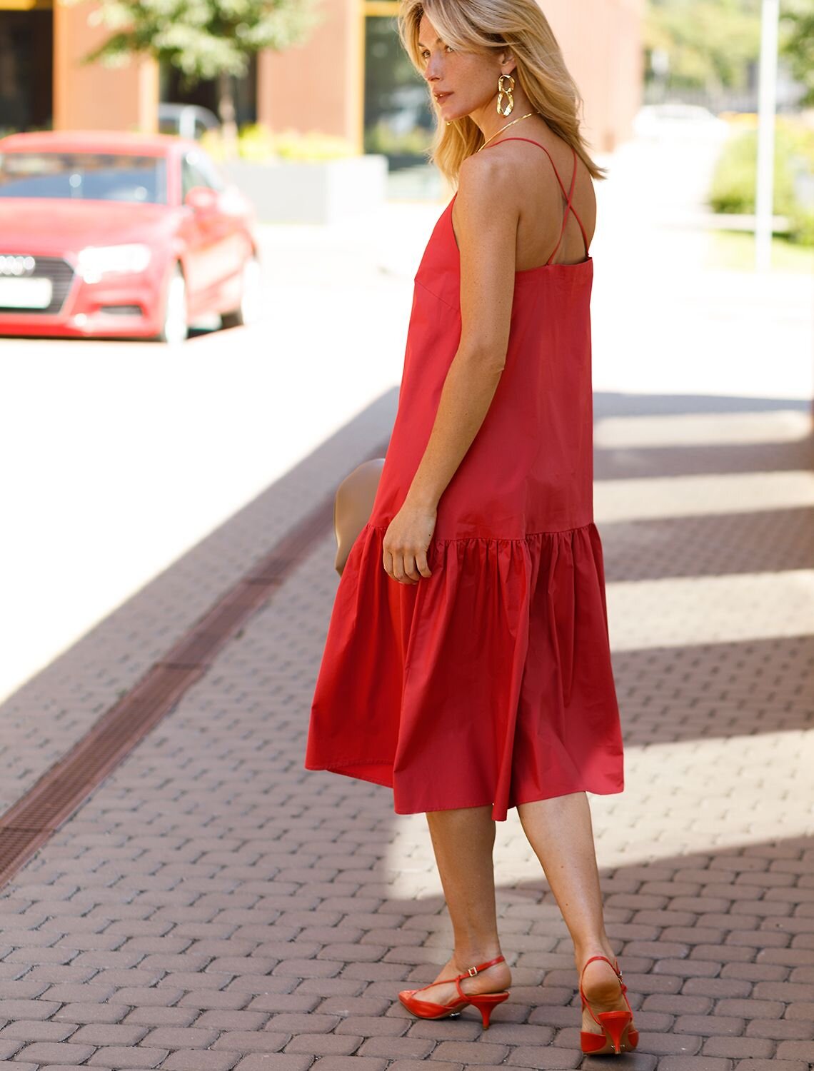 Платье-сарафан выполнено из поплина. Свободный силуэт не сковывает движений и подходит абсолютно всем. Натуральный состав ткани обладает высокой воздухопроницаемостью, а также способностью поглощать и отдавать влагу. Подходит для повседневной носки, гарантируя абсолютный комфорт. Длина изделия в данной модели измеряется по спинке.