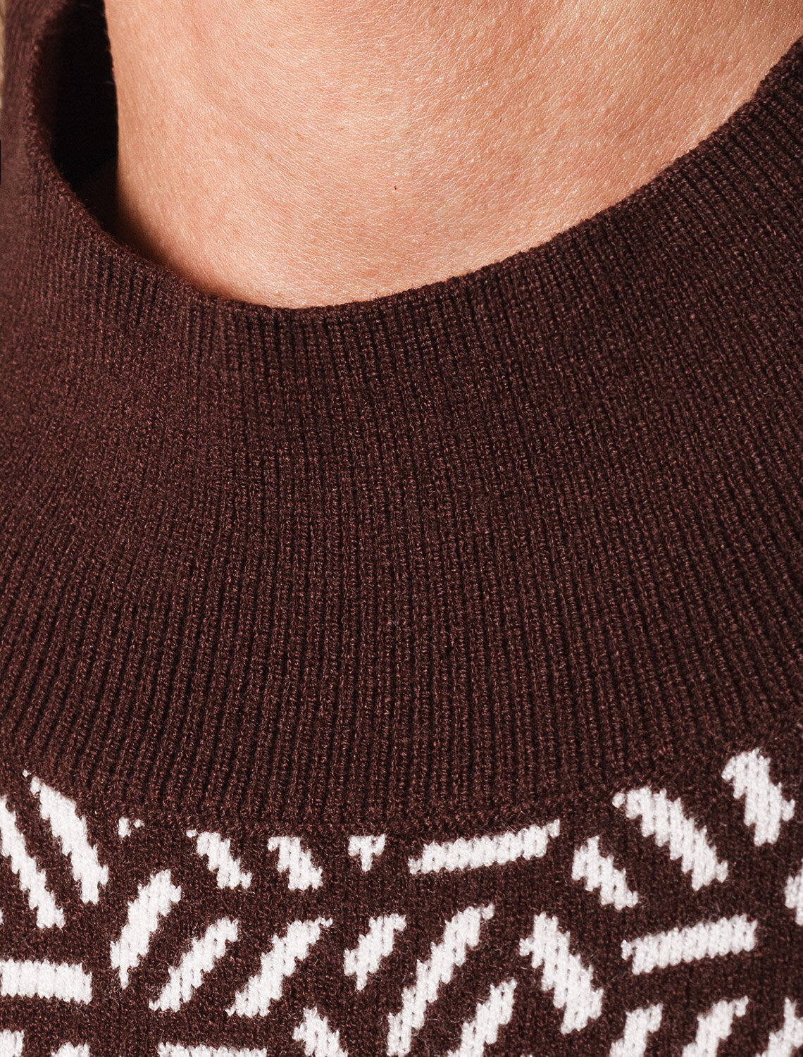 Платье жаккардовой вязки выполнено из мягкой пряжи на основе вискозы с добавлением кашемира. Модель свободного силуэта с высоким воротом и длинным рукавом. Нежная пряжа очень комфортно ощущается на теле, сохраняя оптимальное тепло при этом не перегревая. Совет стилиста: жаккардовое платье отличная инвестиция в базовый гардероб, которая поможет создать дорогие образы. Носите с высокими сапогами удлиняя силуэт или плотными колготками.