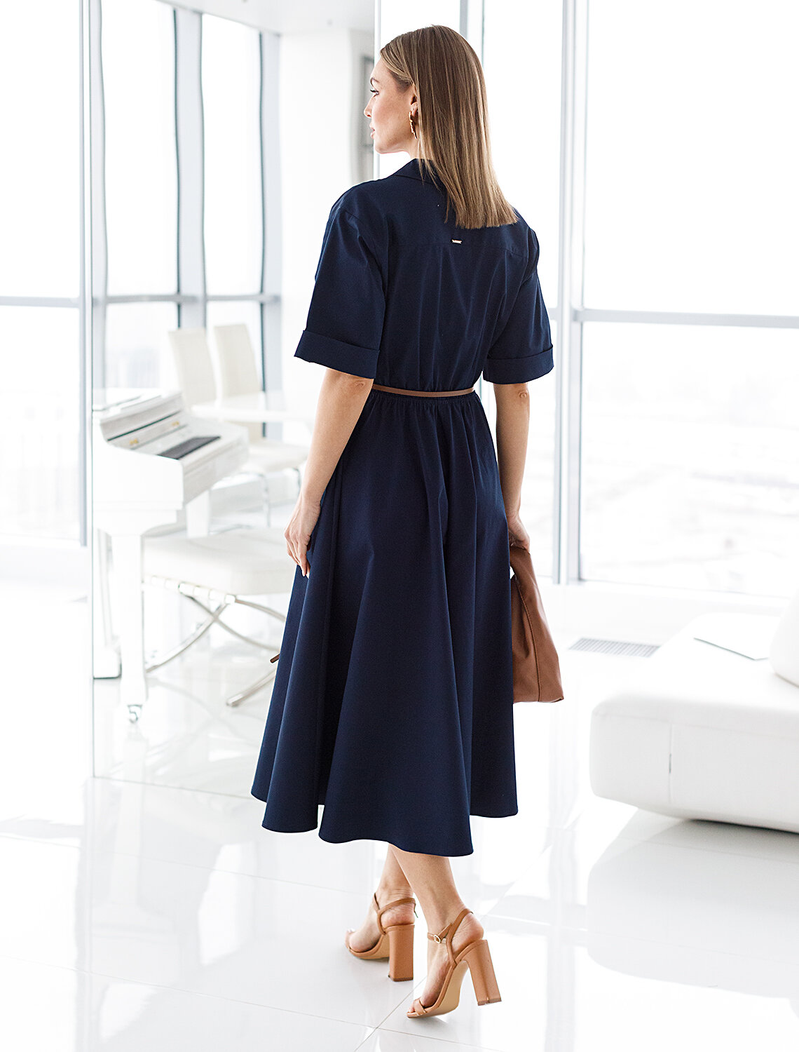 Платье в стиле сафари выполнено из хлопкового твила. Изделие дополнено тонким ремешком из эко-кожи, боковыми и нагрудными карманами, подворотами на рукавах. Застежка на пуговицы спереди. Благодаря наличию эластана в составе изделие сохранит свой безупречный внешний вид в течение долгого времени. Обладает высокой воздухопроницаемостью, в платье будет комфортно даже в жаркое время года.