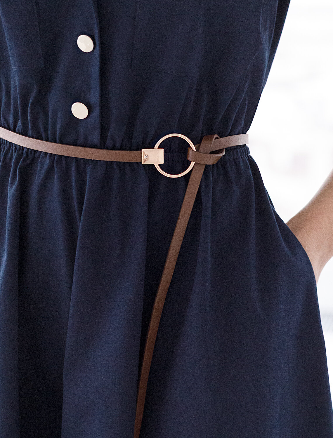 Платье в стиле сафари выполнено из хлопкового твила. Изделие дополнено тонким ремешком из эко-кожи, боковыми и нагрудными карманами, подворотами на рукавах. Застежка на пуговицы спереди. Благодаря наличию эластана в составе изделие сохранит свой безупречный внешний вид в течение долгого времени. Обладает высокой воздухопроницаемостью, в платье будет комфортно даже в жаркое время года.